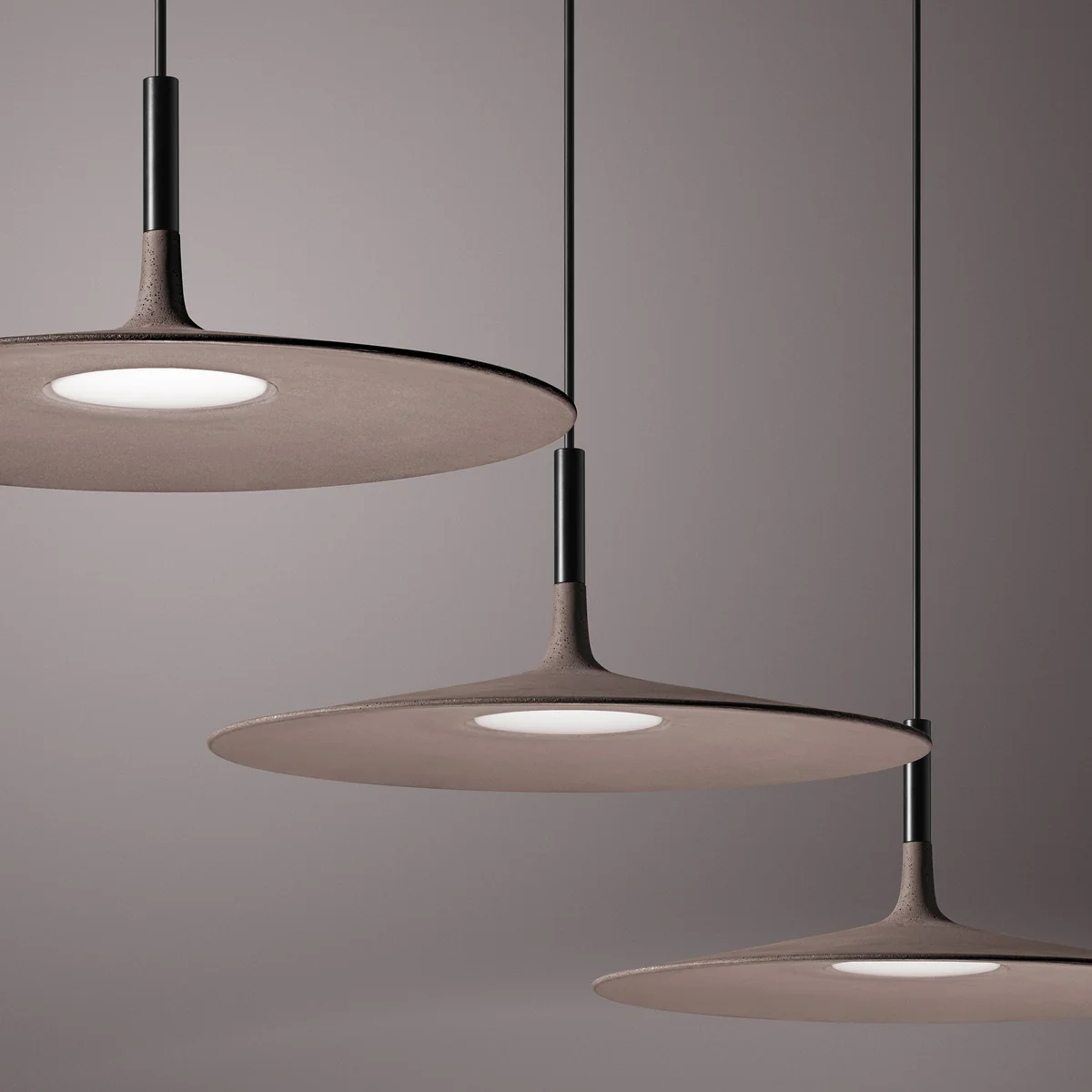 The Aplomb is also available in a version with dimmer to regulate the required light intensity. The pendant lamp is available in marrone, grey and white.