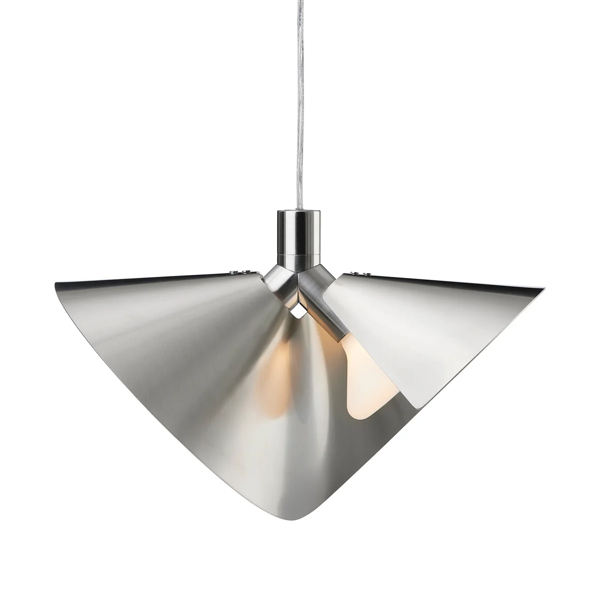The Peel pendant light from Frandsen , a stainless steel light by Dutch-Danish designer Sissel Gram Warringa, has been carefully handcrafted to create a surprisingly soft, diffused lighting effect. The Peel pendant luminaire is the ideal choice for most dining or kitchen areas and is also well suited to workspaces or other professional environments.