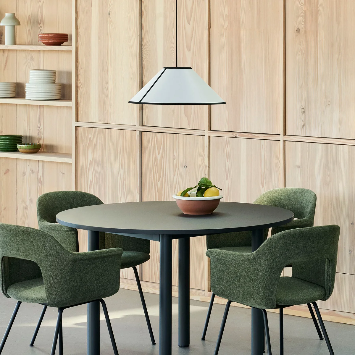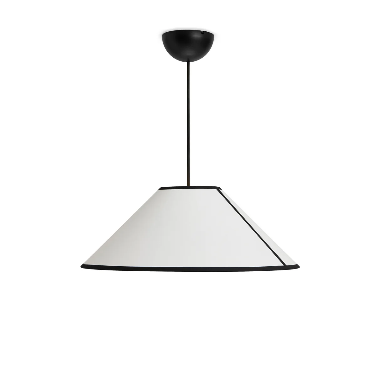 Designed by Ana Kraš for HAY , the pendant light interprets the classic Ava Cone pendant light interprets the classic Empire shape in a modern way. The shade is made of ECOPET™, a recycled PET plastic that has a semi-transparent, paper-like structure and ensures soft light distribution. Contrasting fabric piping gives the luminaire a graphic accent and makes it a discreet but effective eye-catcher. Whether in the bedroom, hallway, living room or dining room - the Ava Cone blends into a wide variety of furnishing styles thanks to its clear, timeless design and creates a warm, inviting atmosphere.