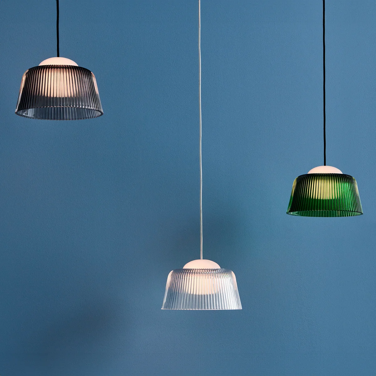 Brim is available in Clear, Smoked Grey and Bottle Green and its compact size makes it perfect for hanging in groups or as a single luminaire in smaller spaces, such as hallways or above counters.