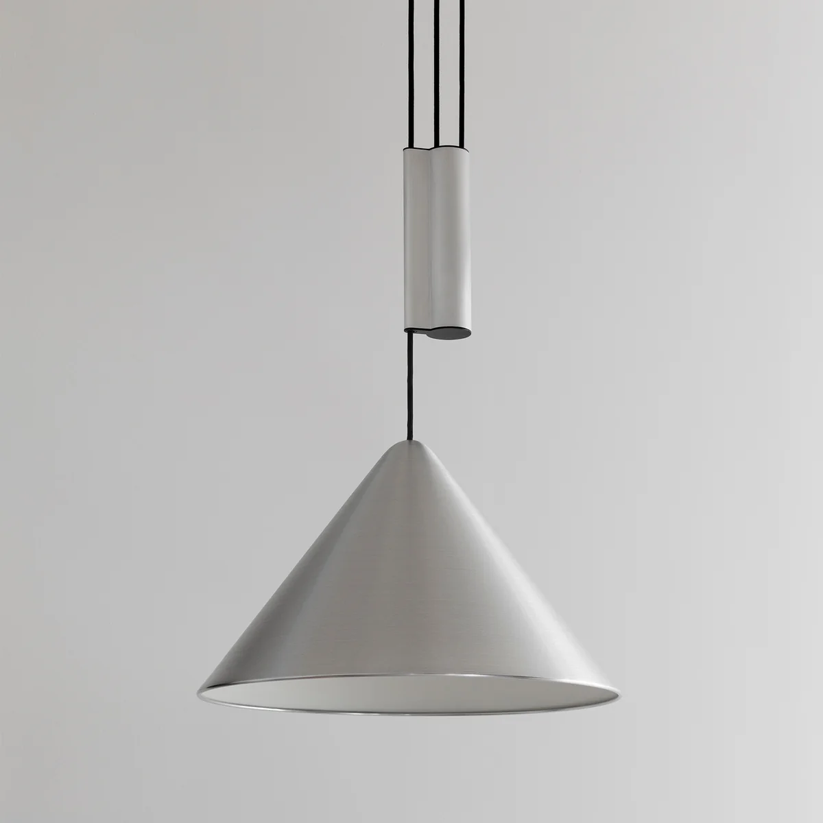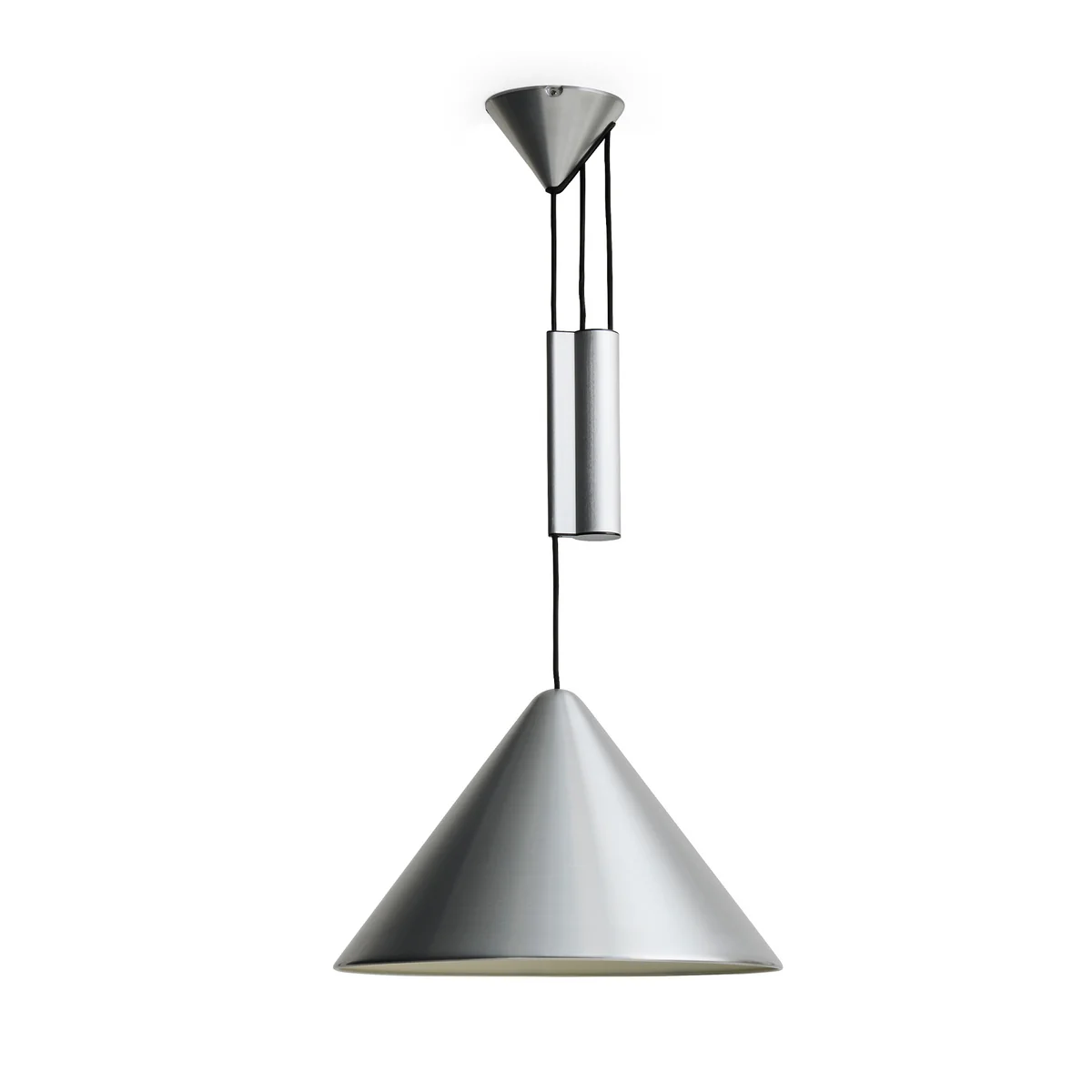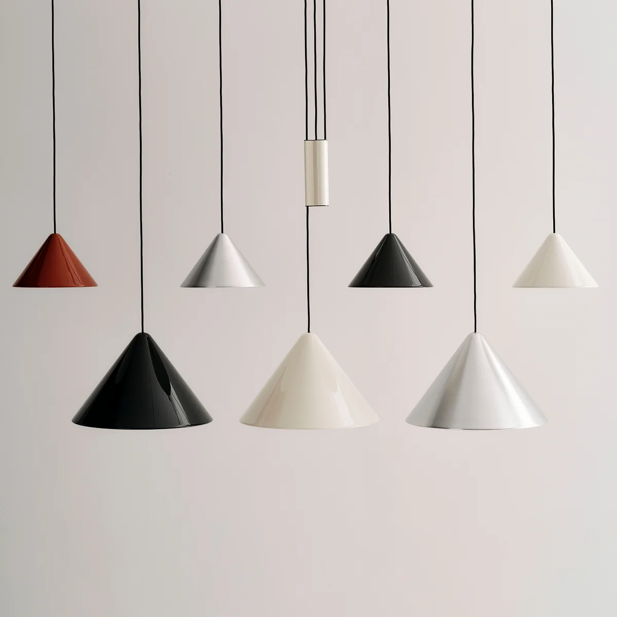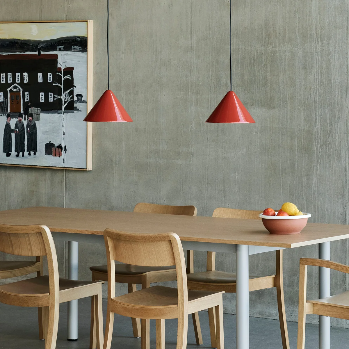 The Compass pendant light, designed by Julien Renault for HAY , is a contemporary interpretation of the classic pendant light. Its slanted, conical shade made of aluminum gives it a clear, modern silhouette that makes a stylish statement both individually and in groups. Compass is available in two versions: as a static model for a fixed height or as a height-adjustable version with a cable length of up to 500 cm to adapt the lighting to different situations. Whether for focused work or cozy dinners - the Compass pendant luminaire combines functionality with timeless aesthetics and creates a harmonious lighting atmosphere in living, working or dining areas.
