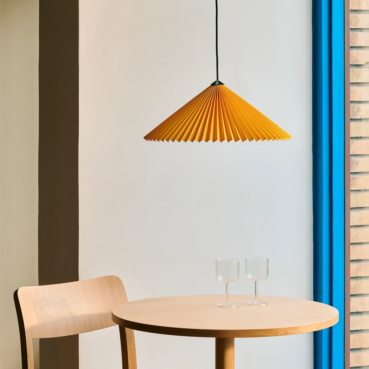 The Matin pendant light from the Danish company HAY consists of a pleated cotton shade and a braided cotton cord, creating a functional and elegant ceiling light. The shade lends a warm and inviting ambience to any room in the house and is available in various sizes and colors.