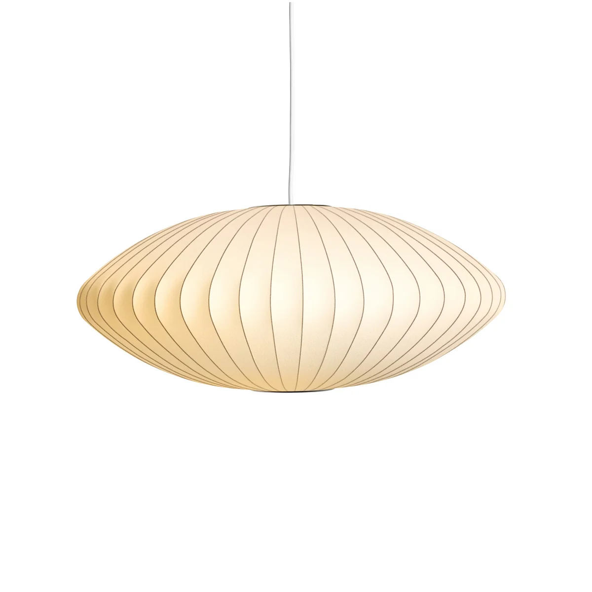 The Nelson Saucer Bubble pendant light is an iconic design object from the mid-century era. Designed by George Nelson in 1952, it is still one of the classics of modern interior design today. With its gently organic shape and off-white shade made of translucent polymer, it creates a warm, diffuse light that lends living rooms, dining rooms and bedrooms a cozy atmosphere.