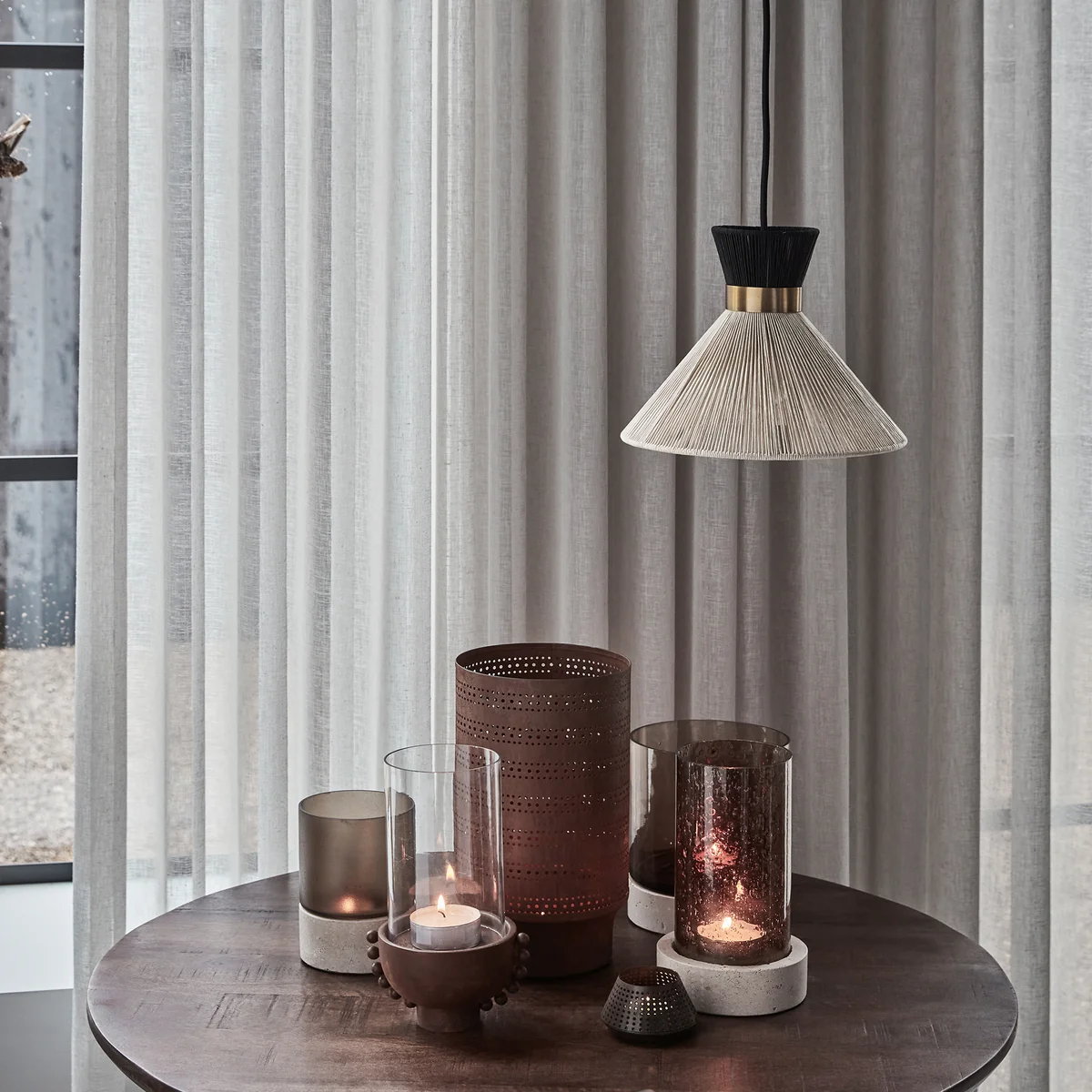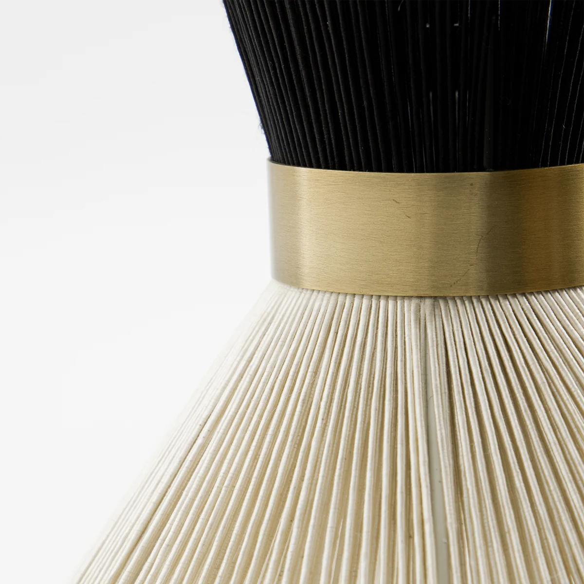 The Cord pendant light from House Doctor is a real eye-catcher that adds elegance and sophistication to your room. This exquisite luminaire combines robust iron and precious brass with fine creamy white and black polyester threads that artfully wrap the shade. The design combines modern aesthetics with timeless charm and provides a warm, inviting light that transforms any room into a stylish oasis of well-being. Whether above the dining table, in the living room or in the kitchen - the Cord pendant light makes a stylish statement in any setting.