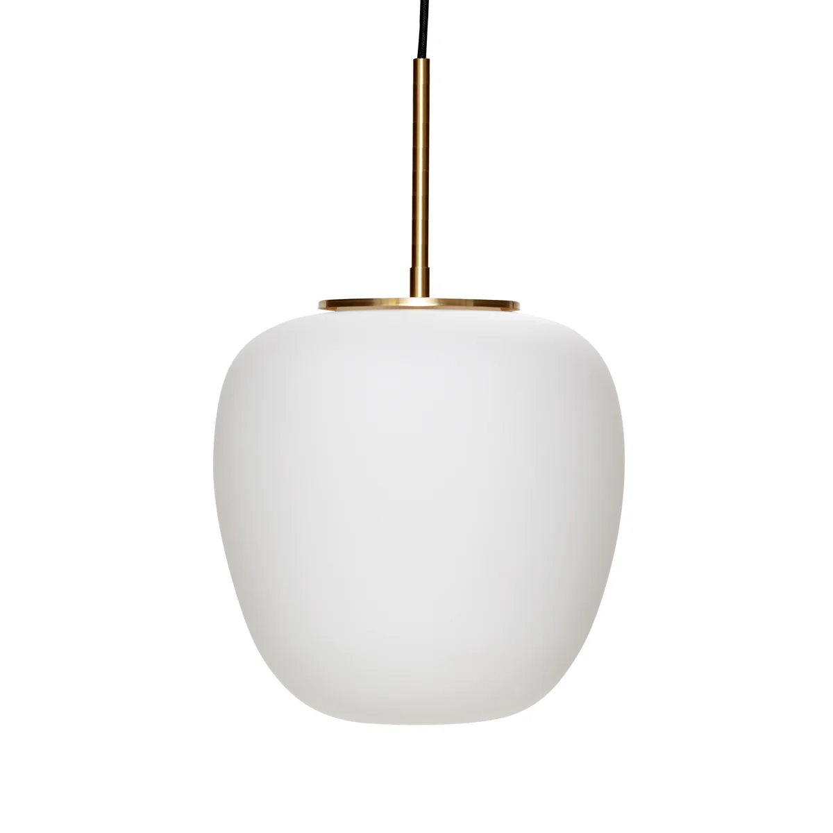 Hübsch Interior produces the pendant lamp from glass and brass. It is available in different shapes and also with a white or mirrored body.