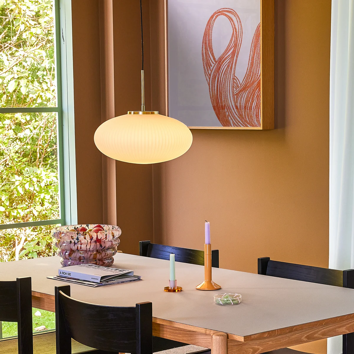 The Serene pendant light combines classic design with modern lightness. The opal glass dome provides a particularly soft, atmospheric light, while fine brass details give the design a sophisticated touch. Whether above the dining table, in the living room or in the bedroom - the lamp creates a calm, stylish atmosphere and blends into a wide variety of interior styles thanks to its understated shape.