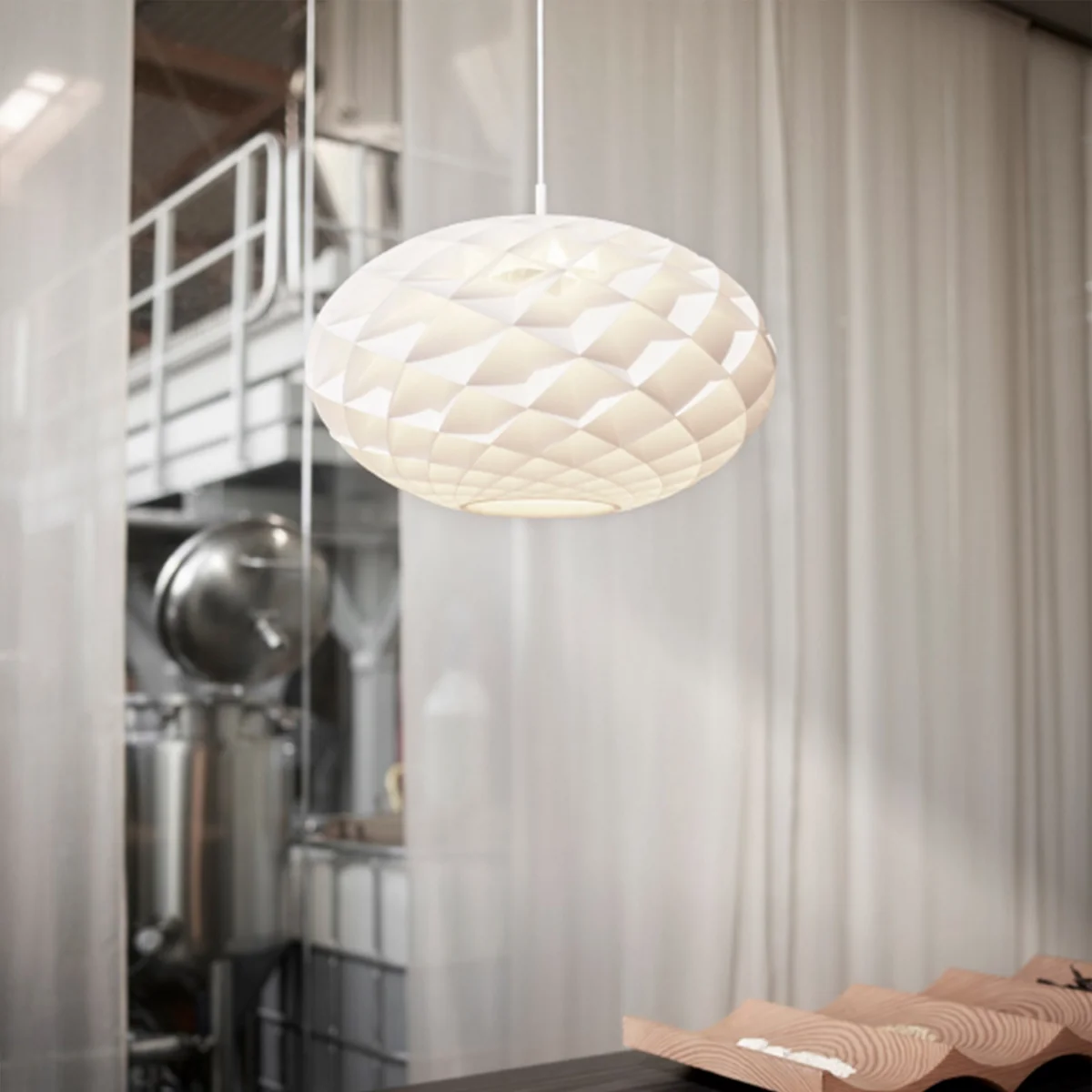 The Patera Oval is part of the Patera family of pendant lights. It was designed by Øivind Slaatto and launched in 2015 in collaboration with Louis Poulsen . The Patera pendant light is a modern interpretation of the classic chandelier. It enriches modern spaces with a shimmering focal point and soft, dynamic lighting.