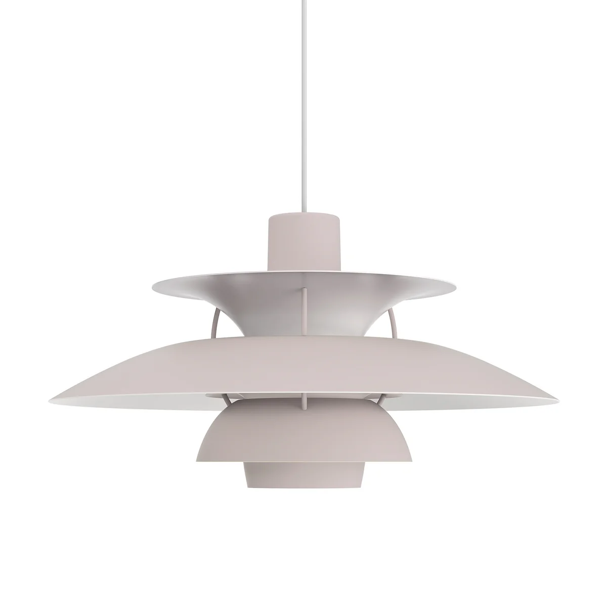 The PH 5 pendant luminaire is a member of the PH 3 shade product family. The PH 3 shade system was initially a pendant luminaire solution, but very quickly developed into other types of luminaires for tables, floors, walls and a large number of chandeliers. As a result of the different sizes, materials, surfaces and light sources, over a thousand variants have been developed over the years.