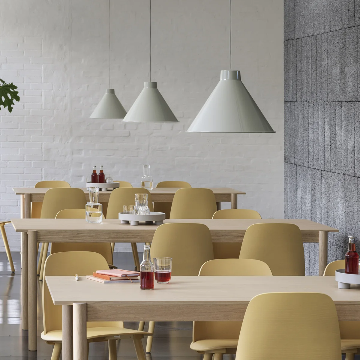 Top pendant lamp LED by Big-Game for the Scandinavian manufacturer Muuto is a stunning eye-catcher thanks to its conical shade! Top is made of high quality, durable steel. The classic, minimalist design meets modern LED technology. The sophisticated, hidden bulb can be easily dimmed as needed. Depending on your preference, the Top pendant light is available in different sizes and color finishes. It can be optimally hung in the dining room above the dining table or presented as needed in the bedroom and living room.