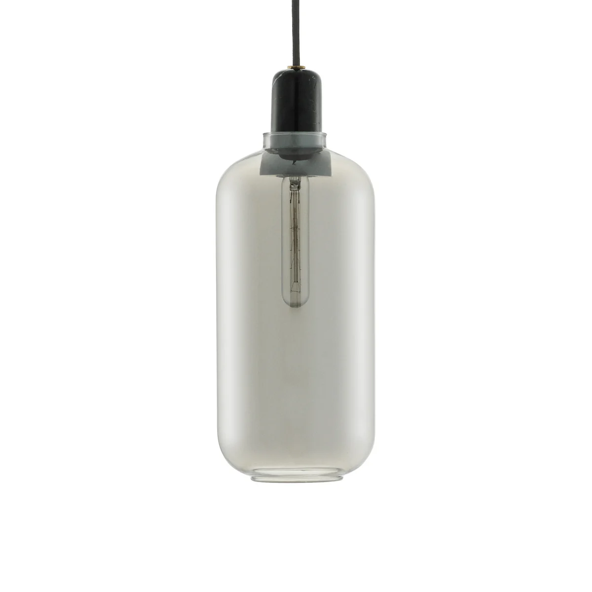 The idea for the shape of the Amp Pendant lamp came about when designer Simon Legald was restoring an old radio from the 1960s at home. While looking for a spare part for the radio, he noticed the glimmer of the tube amplifier. The simple, oval shape and l amp en screen refer to it - as does the name Amp , the English name for tube amplifier. The proportions of the Amp luminaires from Normann Copenhagen are carefully worked out.