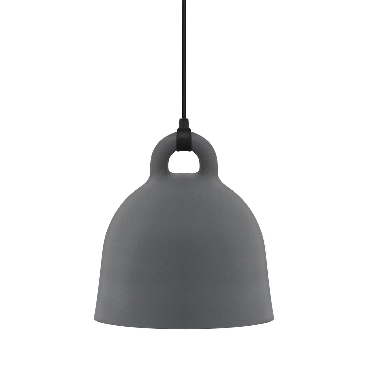 Bell is a pendant lamp with an iconic bell shape with beautifully crafted details. The visual appearance of the hanging lamp by Normann Copenhagen is robust and it has a simple shape. Its smooth round surface gives the impression that the lamp has been cast. Instead of being hidden, the connection between the lead and the lighting has been accentuated in a modern and unusual way for the Normann Copenhagen Bell Pendant Lamp.