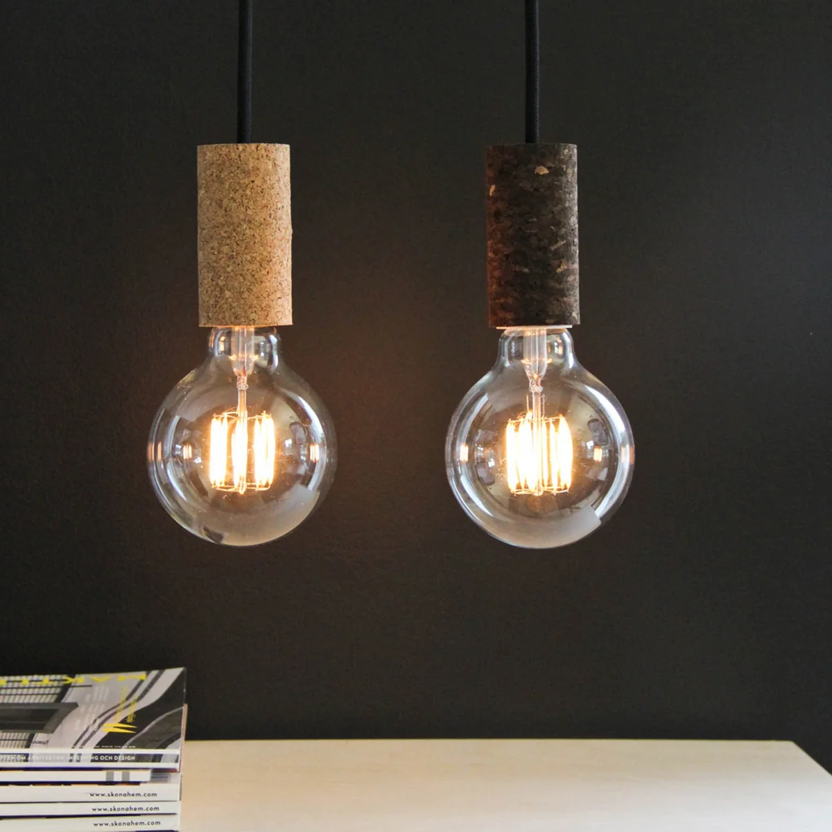Pendant light with cork socket