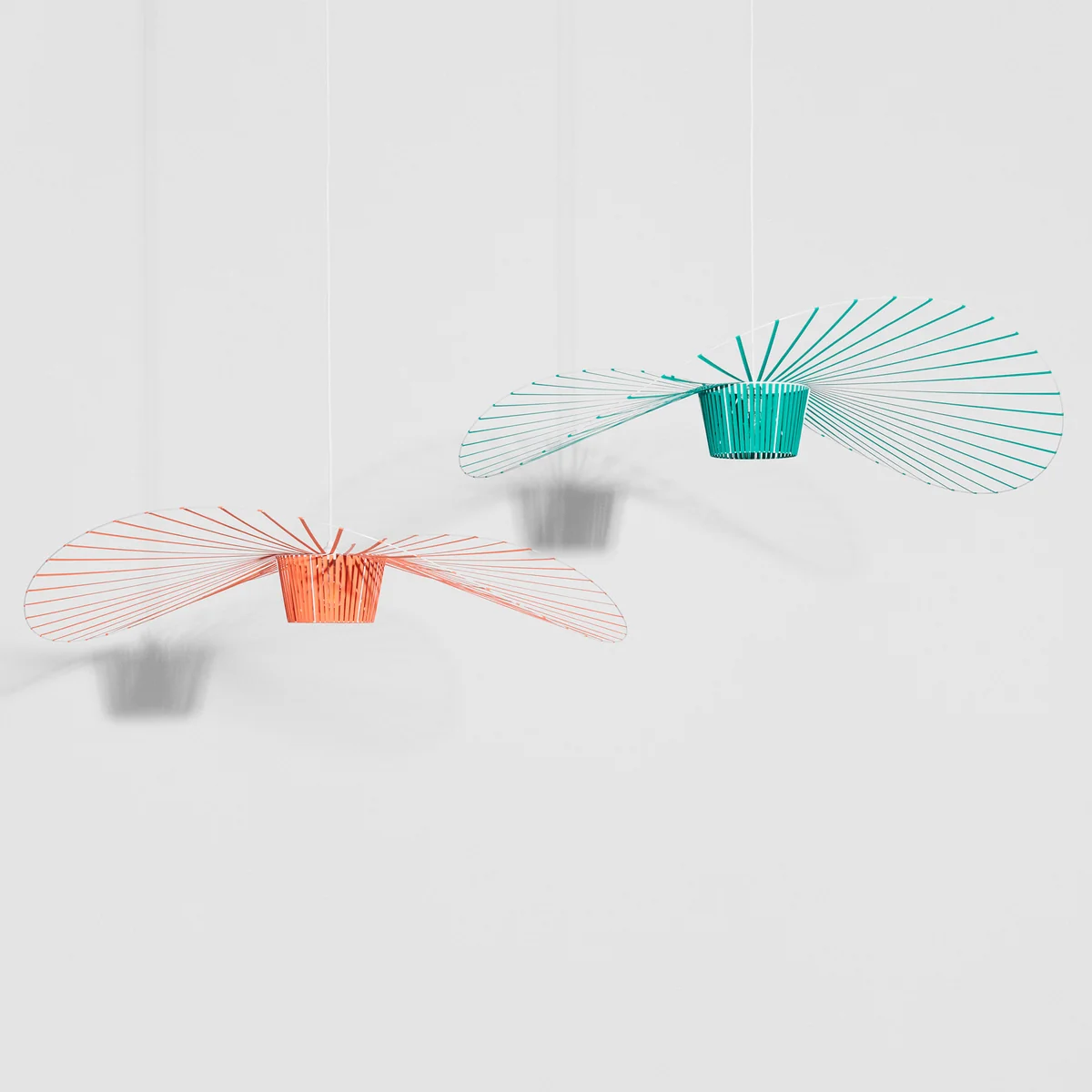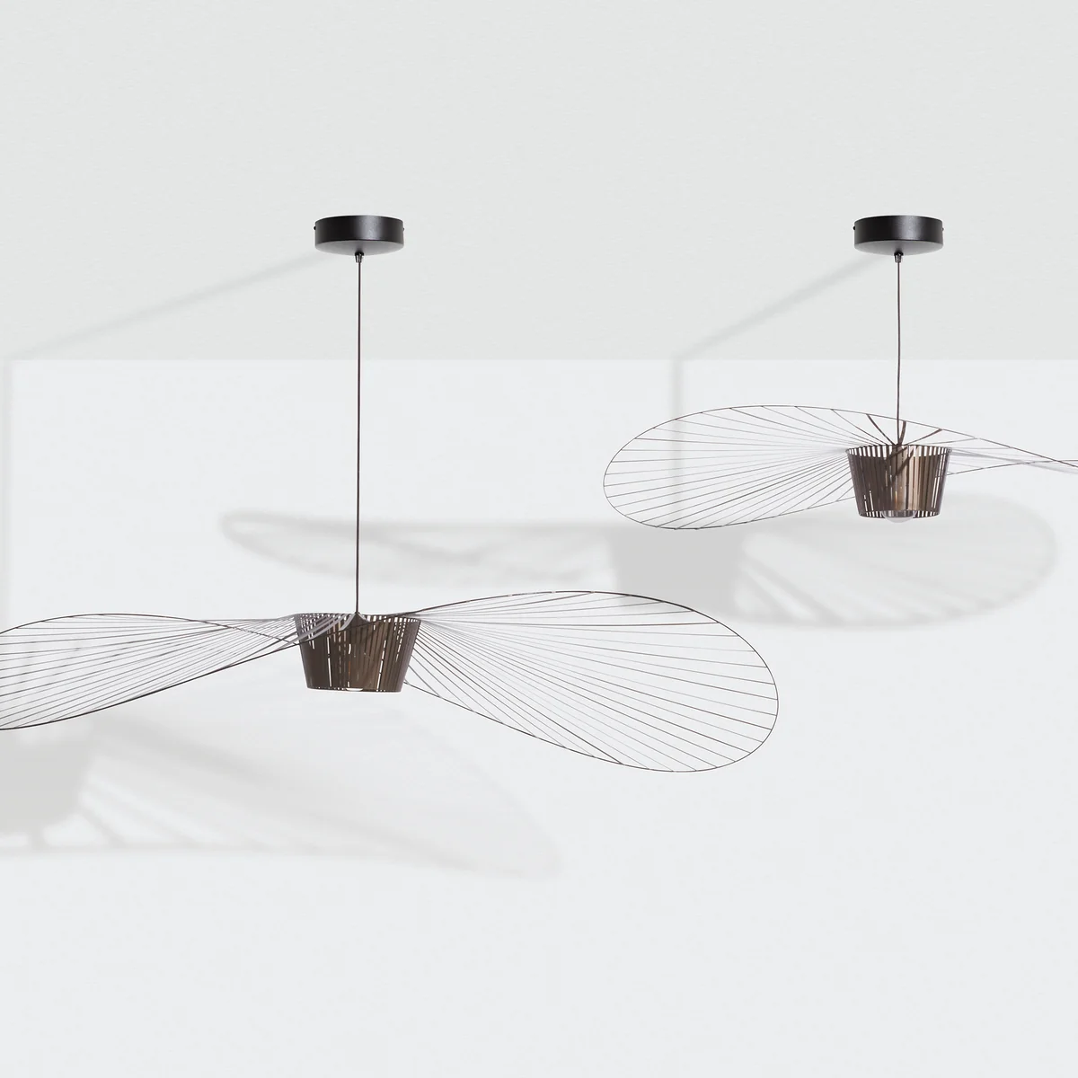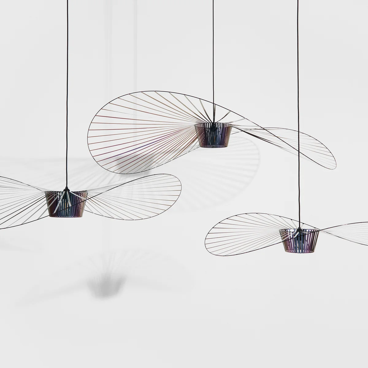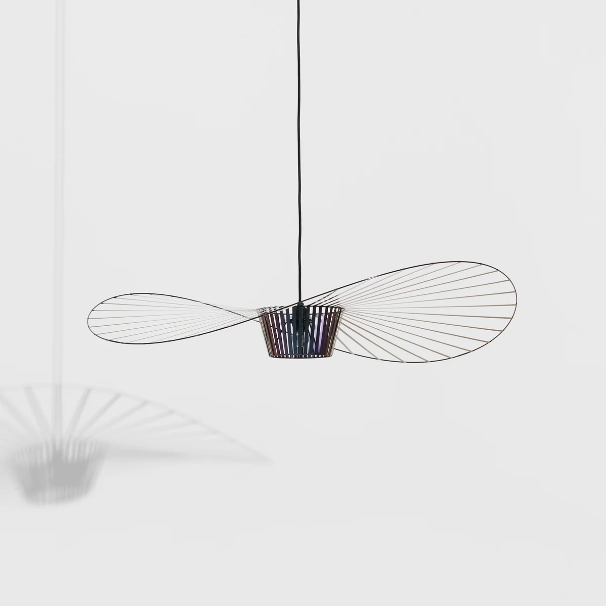 Vertigo from Petite Friture is a large yet extremely lightweight pendant luminaire by designer Constance Guisset. It is not only light in weight, but also in appearance. Vertigo The light consists of a large number of movable struts that cast a diffuse shadow pattern as soon as they are illuminated by the light.