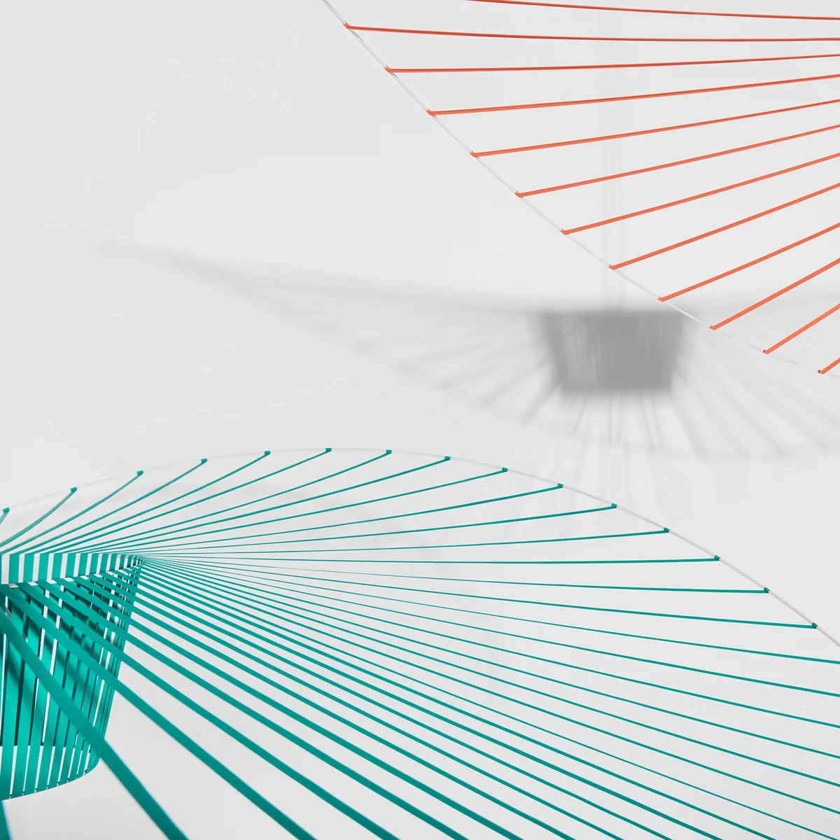 Due to the low weight of only 500 grams on a considerable size of about 2 meters, it moves gently in the rhythm of the wind. Vertigo gently to the rhythm of the wind. In the air stream, the lamp turns leisurely around itself and seems to flow, while the flexible shade simultaneously tilts and bends. With its curved shape, it visually Vertigo visually envelops the area below and creates a calm and intimate atmosphere with its gentle movements.