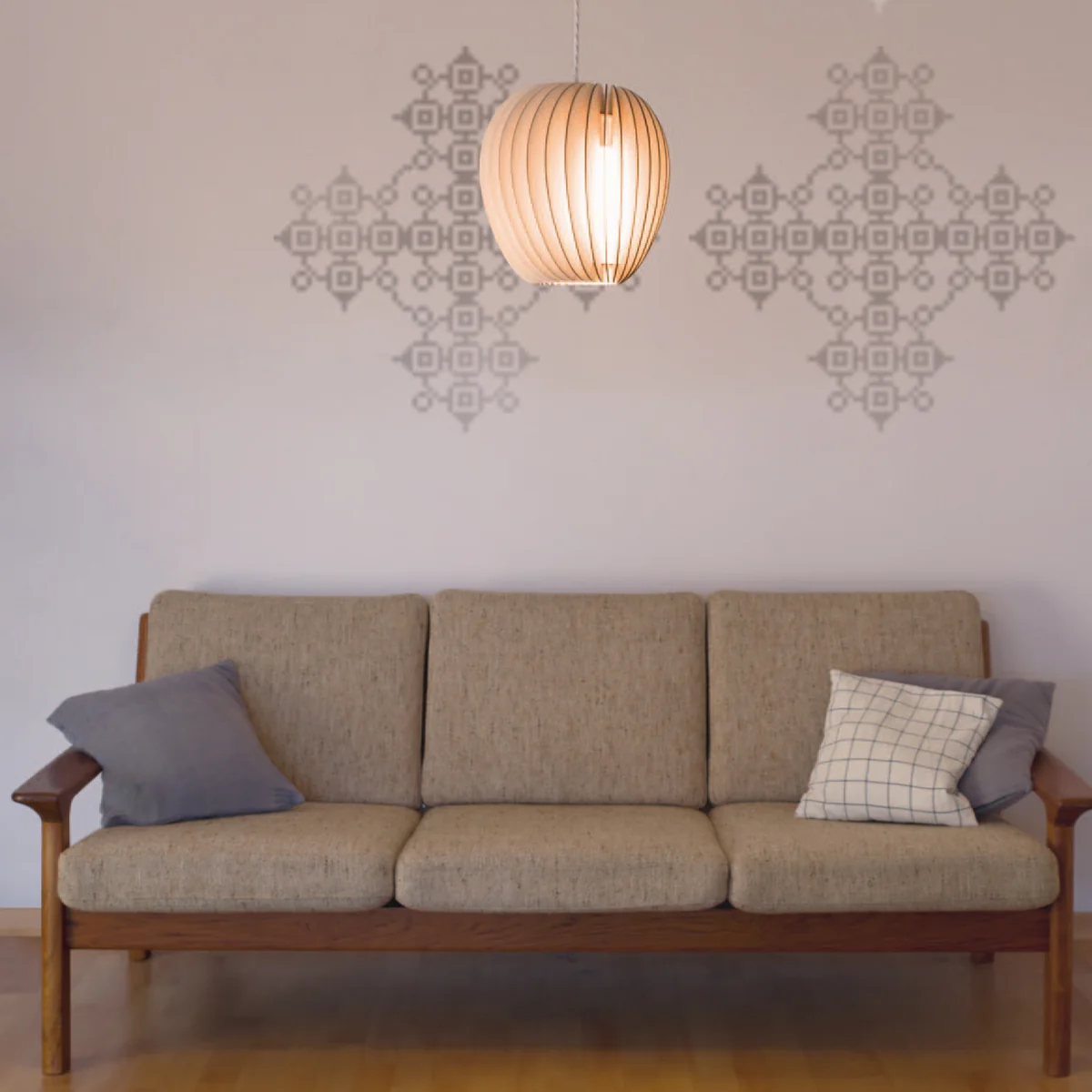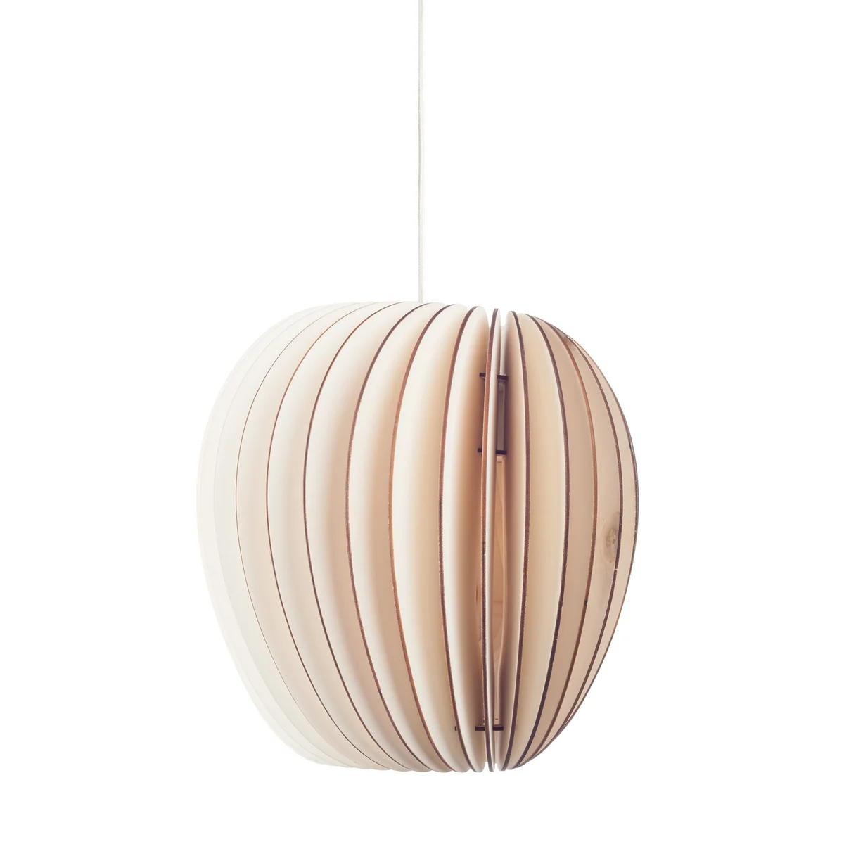 The lights have been designed above all for the living and dining areas. The Pirum pendant lamp, as all lights from Schneid, are handmade in North Germany. The poplar material comes from sustainable forests from local suppliers. All lights are delivered with 2m of fabric cable and a “CableCup” cover.