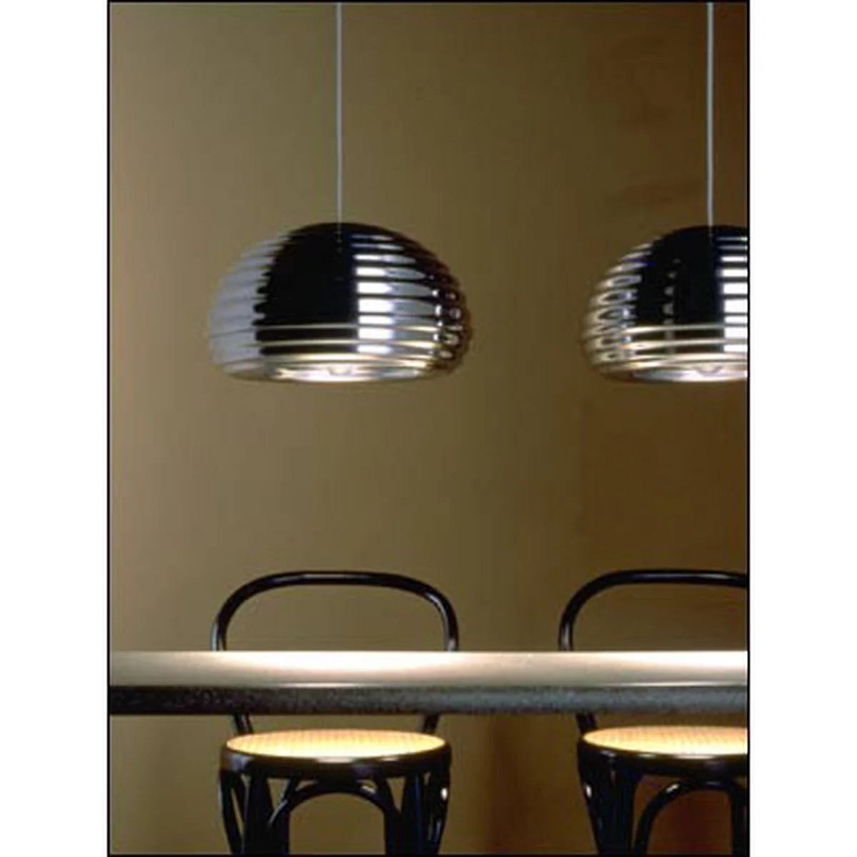 The pendant lamp Splügen Bräu was created in 1961 by Achille and Pier Giacomo Castiglioni for the brewery and restaurant " Splügen Bräu " in Milan. The Castiglioni brothers also designed other objects for the interior of the Splügen Bräu building, built in 1960 and destroyed in 1981, including the well-known "Spluga" (Zanotta) bar stool or the "Splügen" beer glasses (Poretti / Alessi).