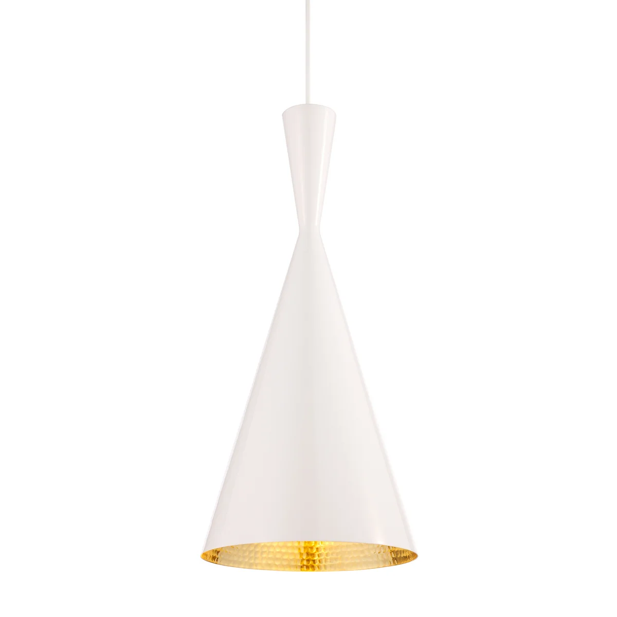 Beat Light is a series of pendant lamps from Tom Dixon. The lamps are hand made out of brass and only later got their black-colored exterior. The Beat Lights differ from one another in the shape of their shades. Beat Light Wide has a flat but soft shade, Beat Light Stout possesses a thick, round shade. Beat Light Fat is small, but compact. And Beat Light Tall is a long funnel-shaped lamp.