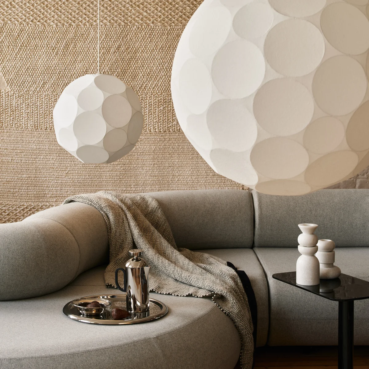 The Soft pendant light shows the understated, poetic side of Tom Dixon . With its gently rounded shape, it is reminiscent of an emerging celestial sphere and emits a warm, diffuse light. The welded steel frame is spun into a fine, light-diffusing shell - a design that radiates calm, lightness and elegance. By using a Smart light bulb, the light color and brightness can be individually adjusted to change the mood of the room.
