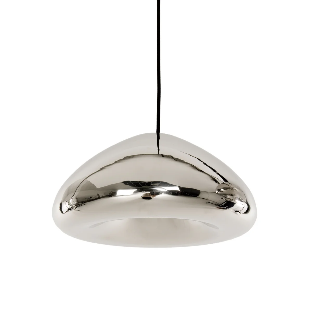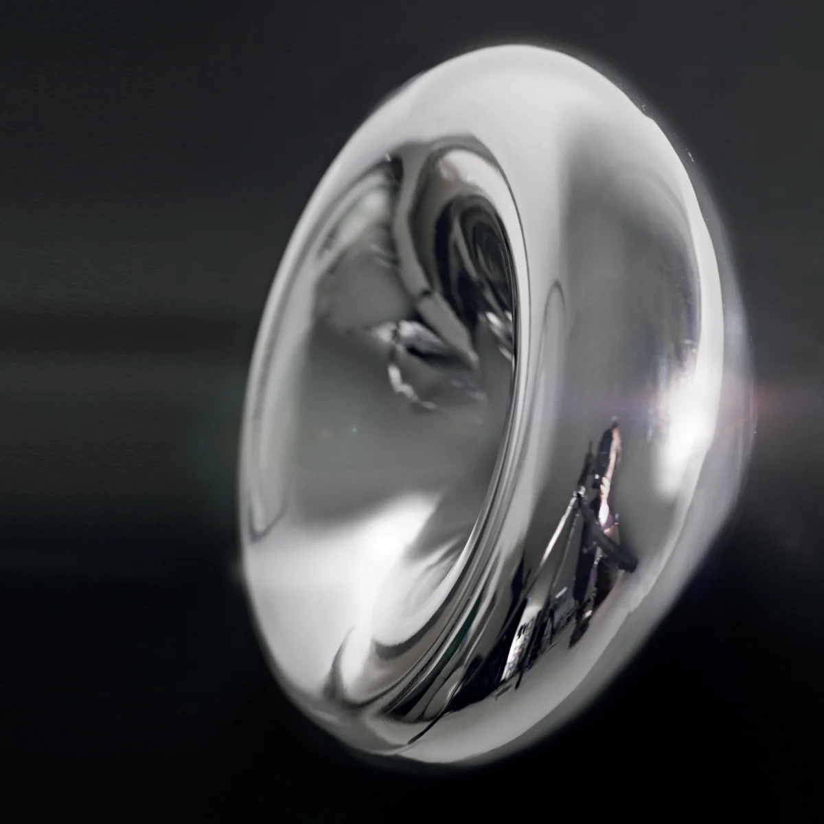 The Void Pendant Lamps are manufactured in an elaborate process. The individual metal sheets are pressed, stamped and heated, resulting in a double-walled shade that is then polished by hand and varnished to obtain the special glossy effect. Use only a dry cloth for cleaning. Avoid the use of water or detergents.