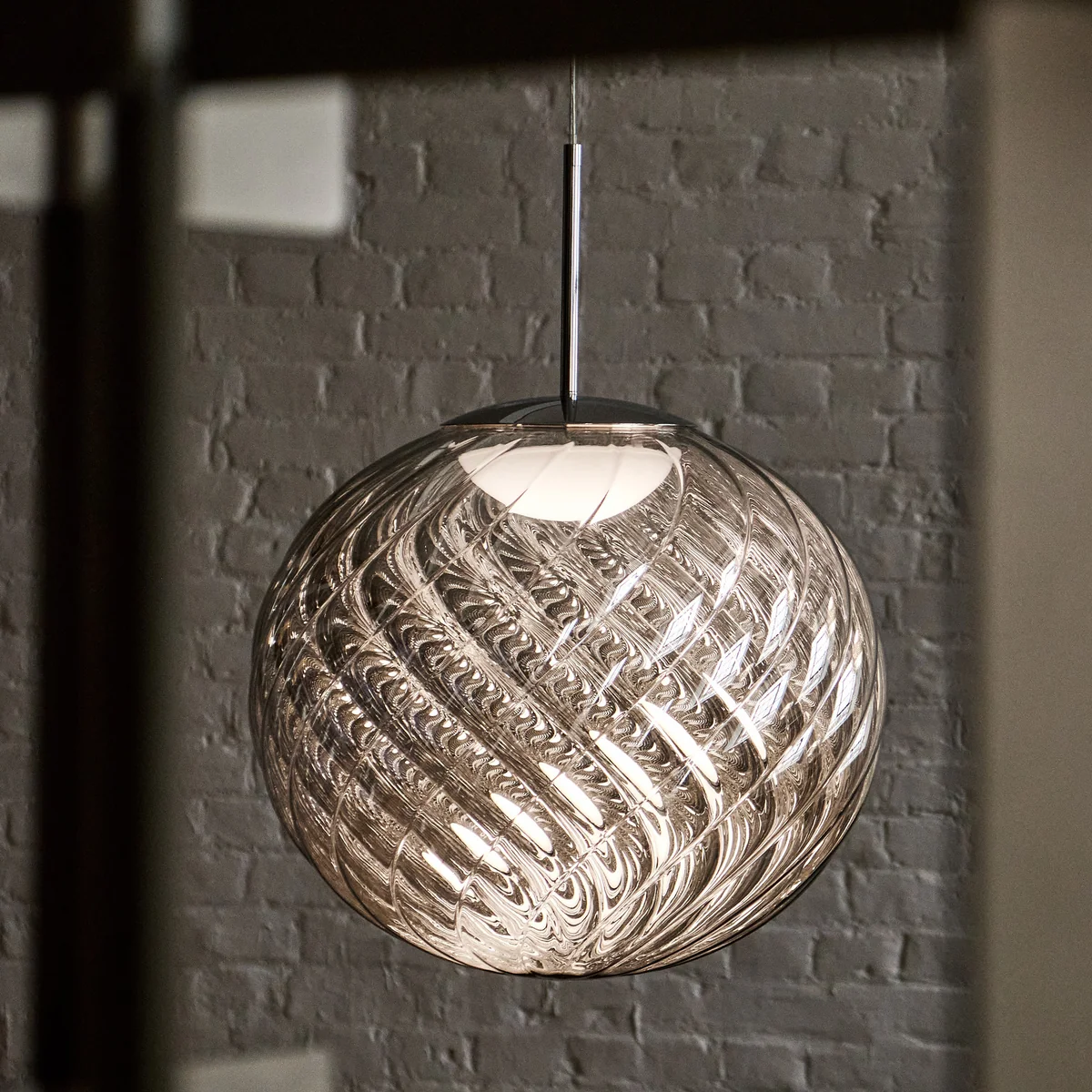 The Whirl LED pendant luminaire is an impressive experiment with light and perception, inspired by the Op Art movement. Its spiral shape creates a fascinating interplay of light and shadow through countless reflections. The semi-metallized surface reflects the light in multi-layered patterns, giving the luminaire a sculptural, almost hypnotic effect.