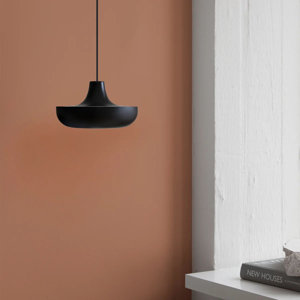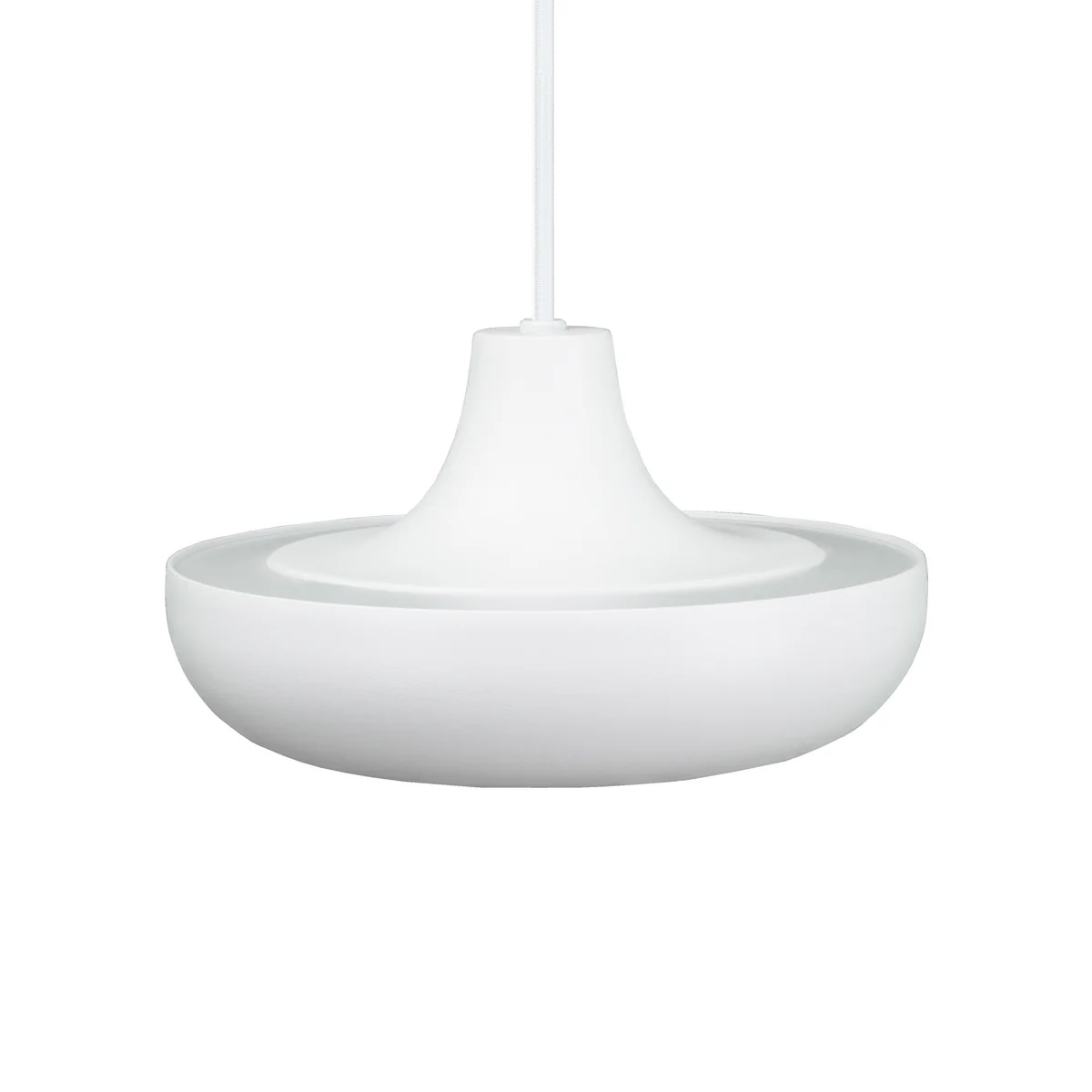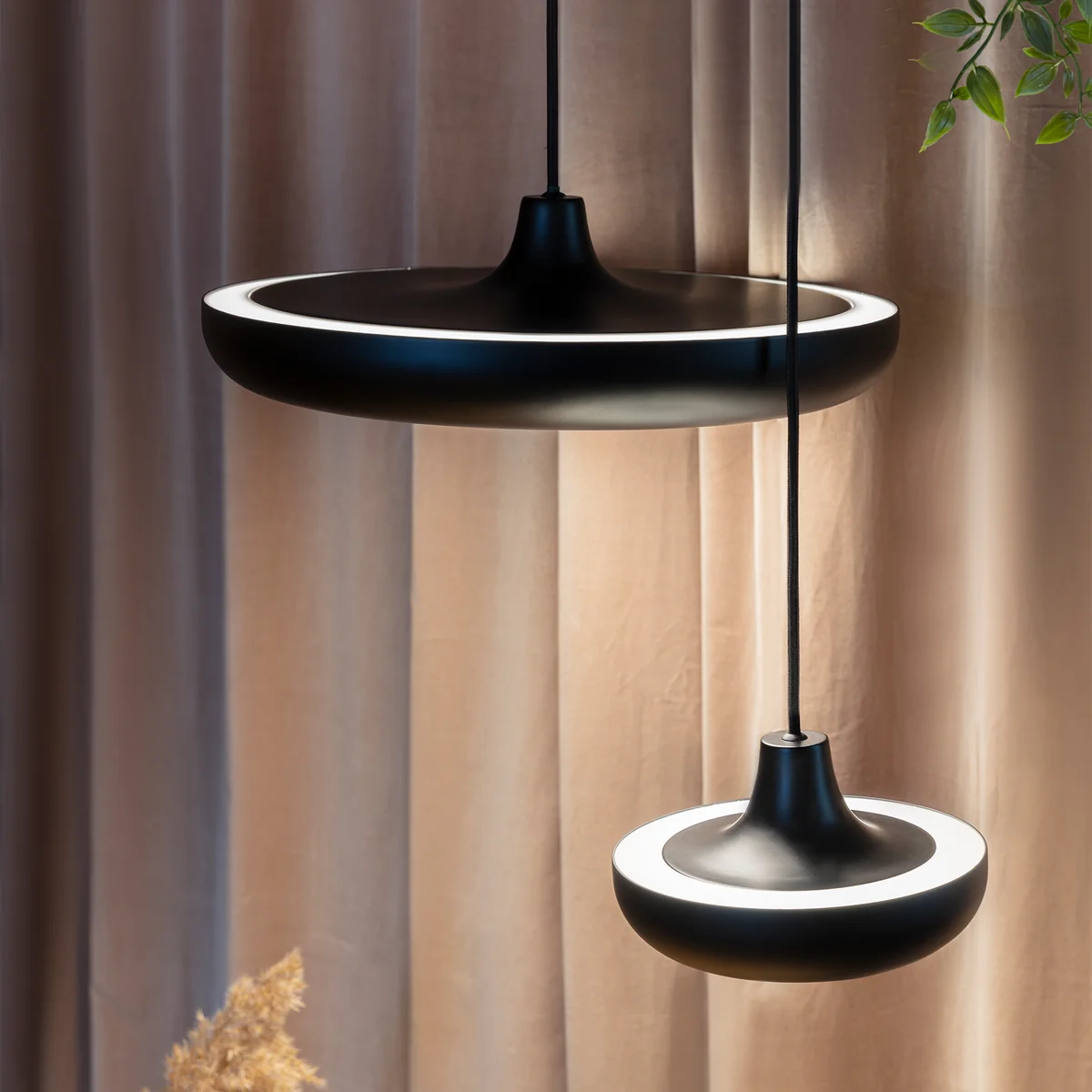 The Cassini LED pendant light from Umage is a luminaire inspired by the rings of Saturn. It features a built-in LED panel with white diffusers that create a soft, glare-free light (3000K) in the room and ensure a sustainable design life. A top panel provides ambient lighting both up and down, highlighting the details of the design and adding a soft ambiance to the space. Danish designer Jacob Rudbeck is behind the design.