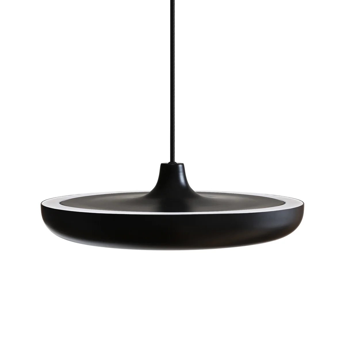 The Cassini LED pendant light from Umage is a luminaire inspired by the rings of Saturn. It features a built-in LED panel with white diffusers that create a soft, glare-free light (3000K) in the room and ensure a sustainable design life. A top panel provides ambient lighting both up and down, highlighting the details of the design and adding a soft ambiance to the space. Danish designer Jacob Rudbeck is behind the design.