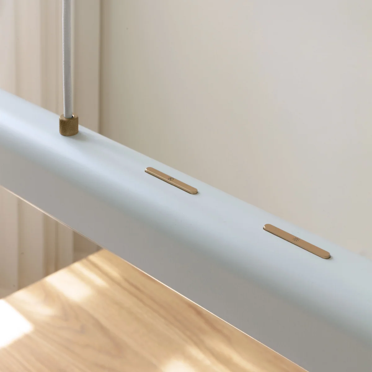 Depending on personal preference is Hazel Branch Available in a variety of color options. The lamp is made of brushed steel and decorated with noble brass details. The textile cable is color-matched depending on the version.