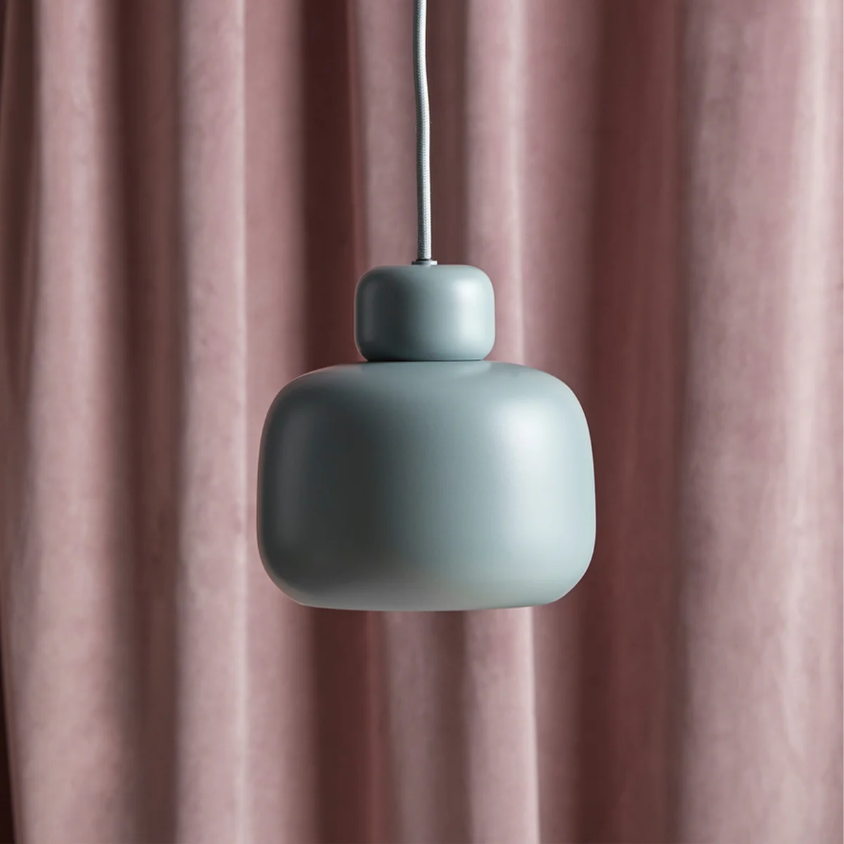 The Stone Pendant lamp from Woud is made of painted metal and is available in different colors and sizes.