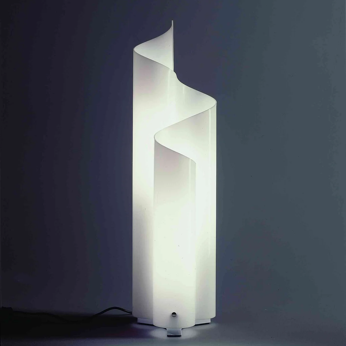 The translucent body of Artemide s Mezzachimera is made of methacrylate. The wavy shape of the luminaire is achieved by hot bending the material during the manufacturing process. The base is made of lacquered metal.