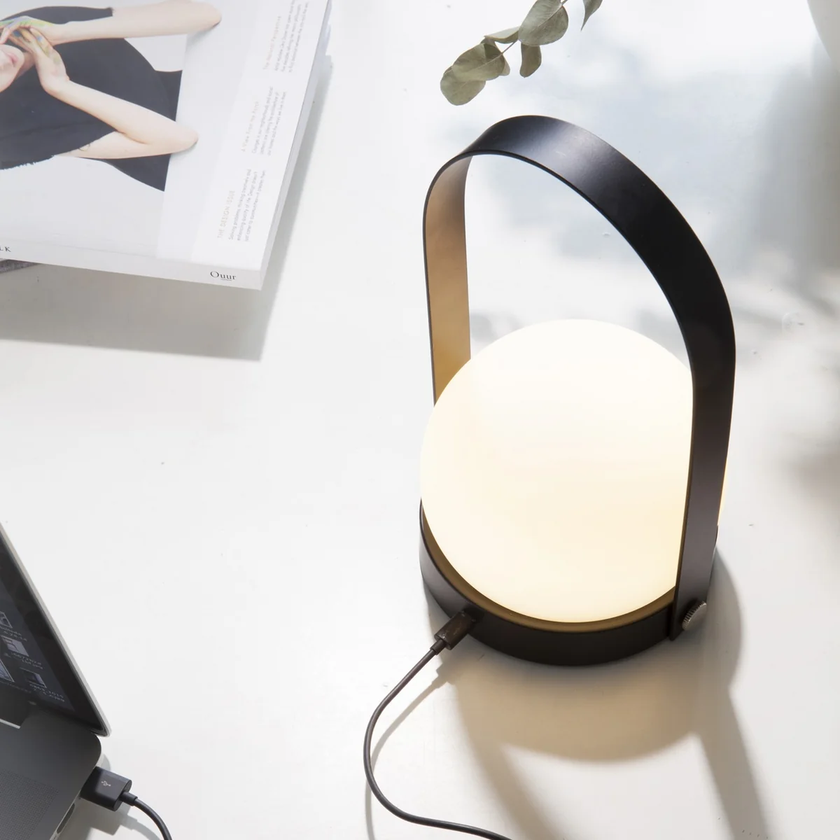 Equipped with a USB charger and up to ten hours of battery life on a full charge, the cordless design of the Carrie Rechargeable Lamp effortlessly moves from table to patio or bookshelf to desk, illuminating the darkness with its sophisticated, dimmable and glare-free light.