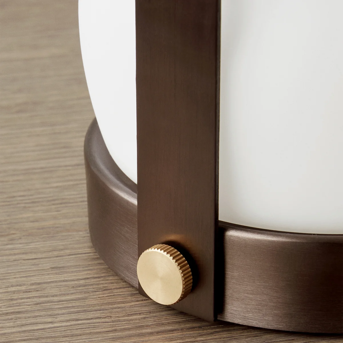 The Carrie LED Lamp was designed by Norm Architects for Audo . The small lamp is the perfect companion for dark evenings in the garden or in the house. No matter where you are - the portable lamp illuminates the surroundings with warm light, creating a soothing atmosphere.