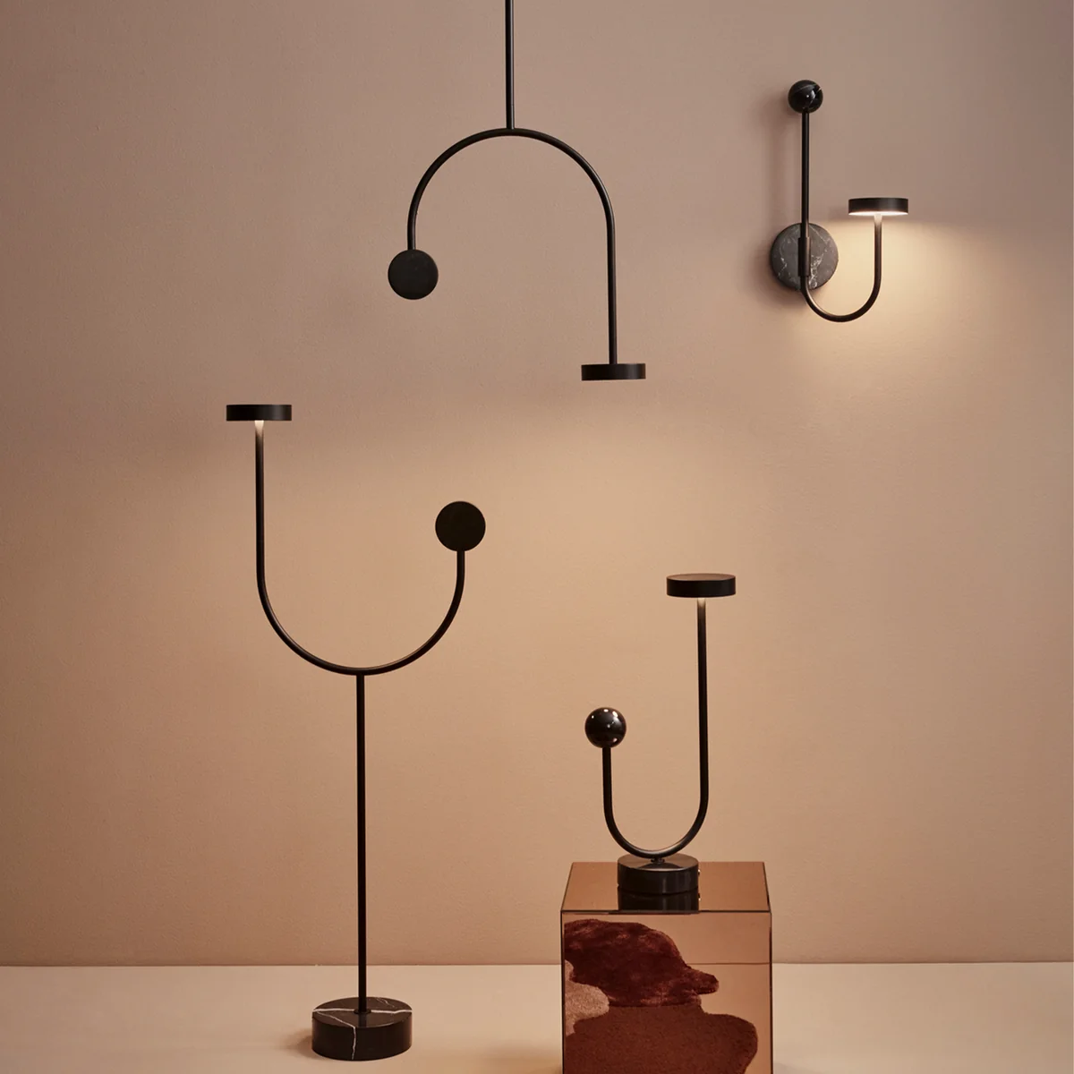 The lights are attached to curved tubes that give the Grasil table lamp an unpredictable look that stands out from the norm. The lamp can be placed on a desk, shelf or next to a bookshelf on a side table. In a graceful monochrome color finish, the lamp is an industrial and eye-catching detail in the decor.