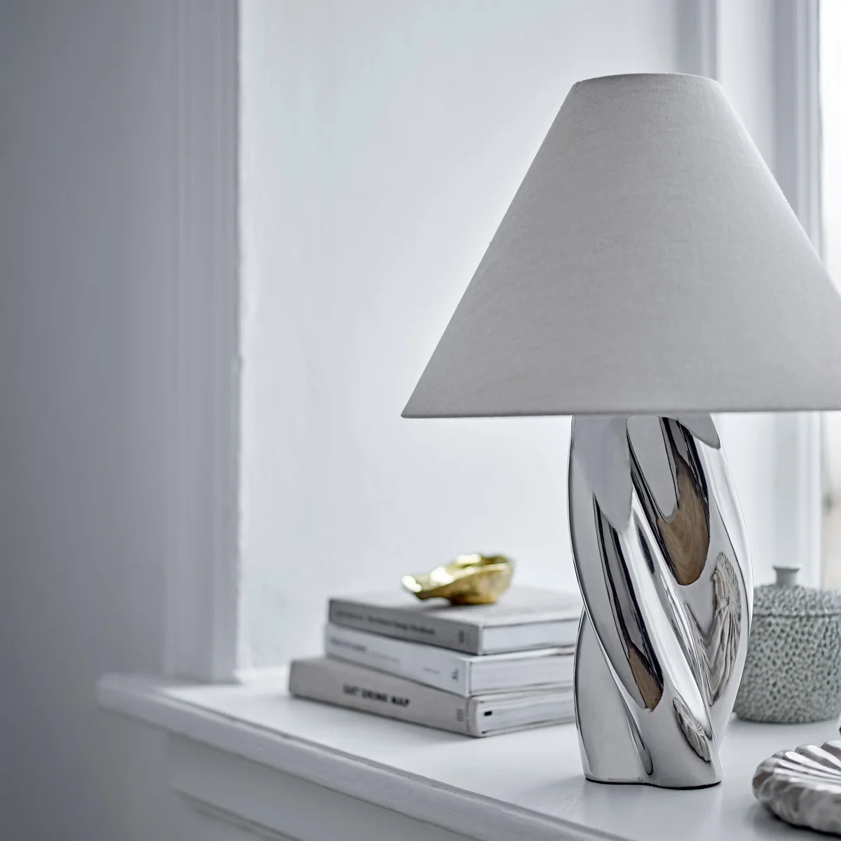 - Sculptural lamp base with shiny surface