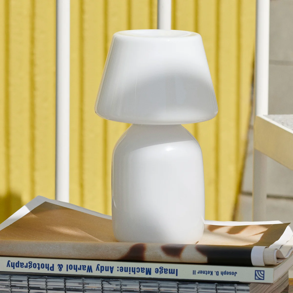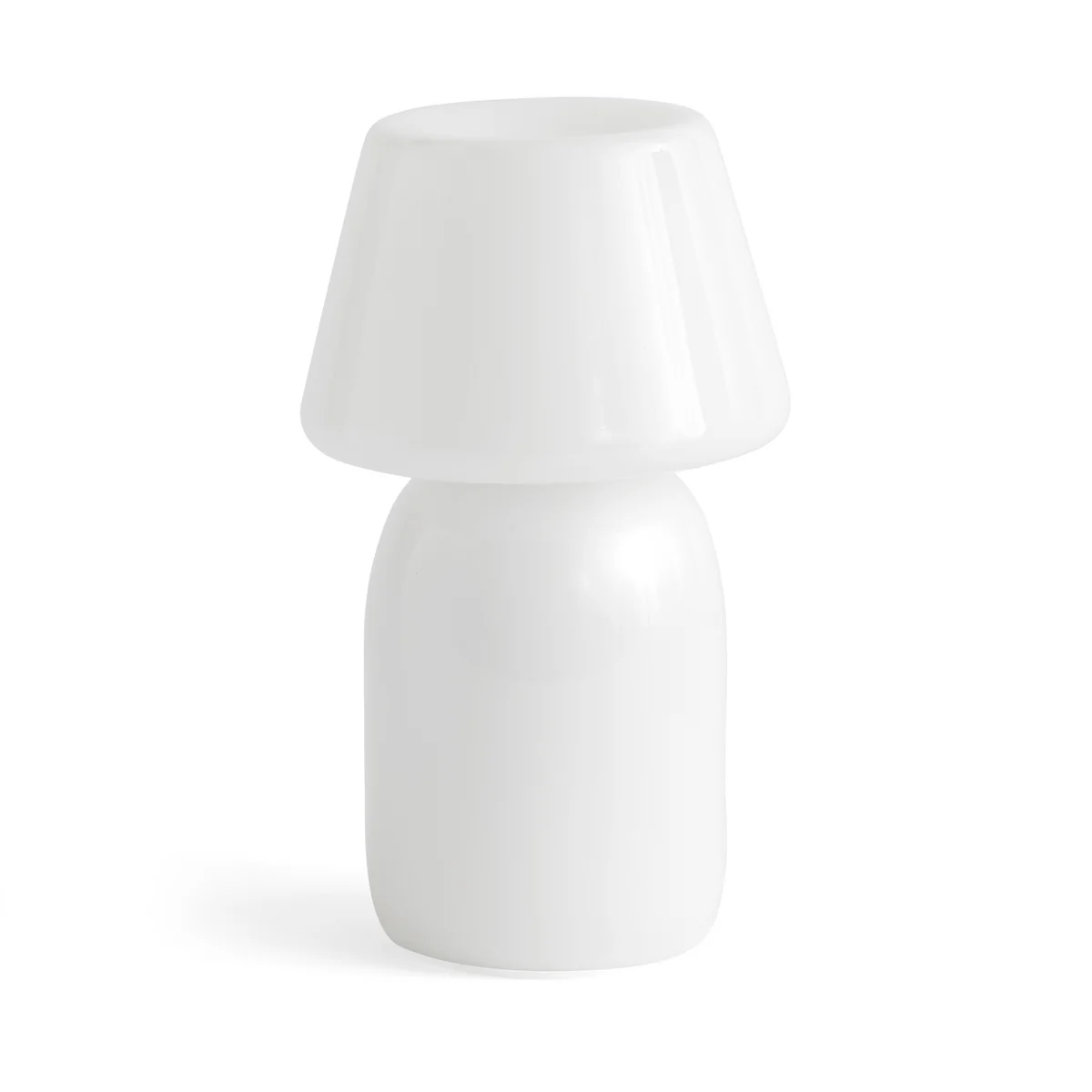 The Apollo rechargeable lamp by STUDIO 0405 for the Danish manufacturer HAY is a portable floor lamp for indoor and outdoor use. Apollo It creates a cozy, warm atmosphere anywhere! It is handmade from a single piece of opal glass. The rounded curves and uniform silhouette are a modern interpretation of the classic lamp shape. The light source and the rechargeable batteries are concealed inside the shade and illuminate the upper part of the lamp. This creates a warm, pleasant light.