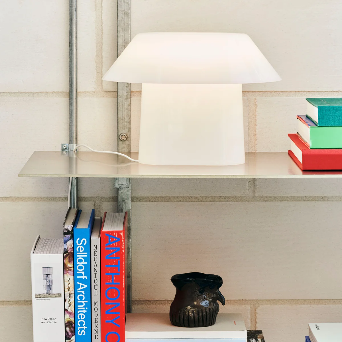 The light output can be regulated with the built-in step dimmer, allowing the lamp to create an atmospheric ambience in different settings and environments, whether it is placed on a bedside table, a desk, a windowsill or a bookshelf.
