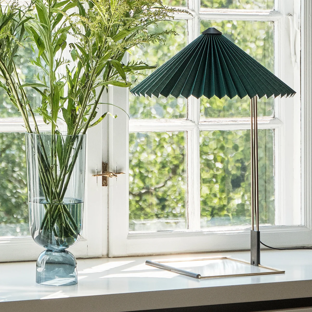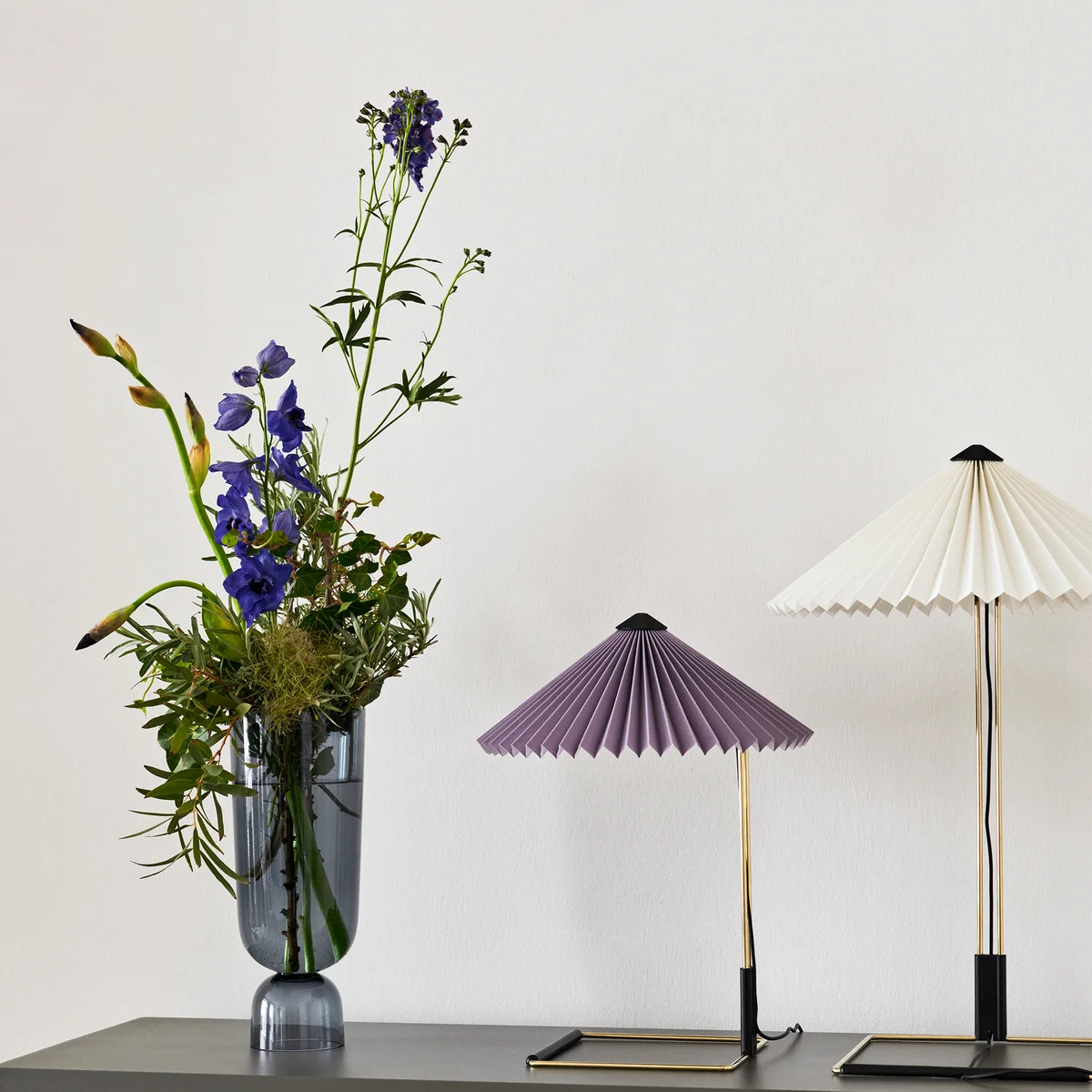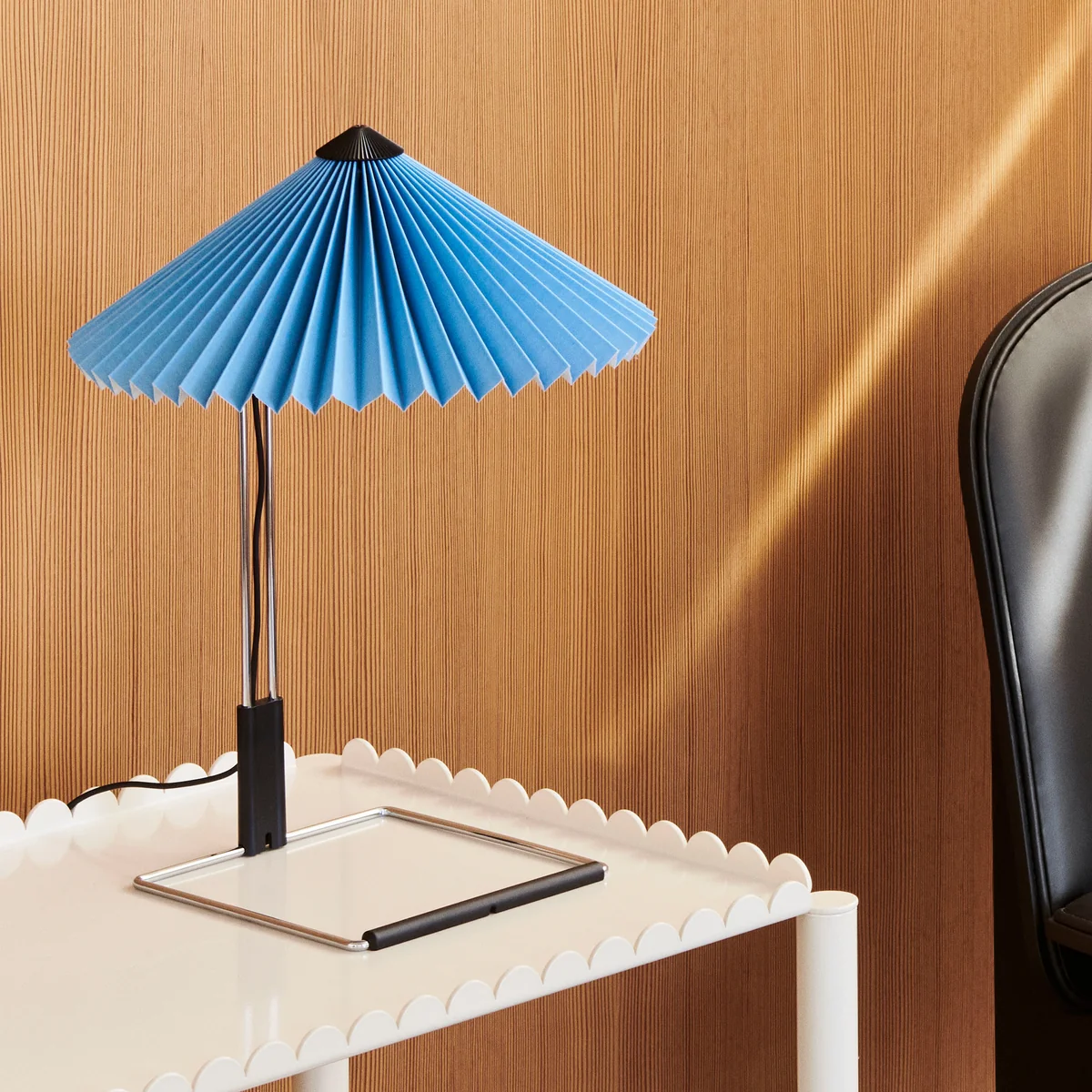 The Matin table lamp from HAY brings back childhood memories of the classic paper umbrellas that were once used to decorate drinks. The Matin table lamp, the pleated shade is made of laminated cotton fabric and is held in place by a delicate steel wire frame. Inside the shade is an LED light source that produces a diffuse, downward-directed light and can be dimmed as required. This makes the table lamp designed by Inga Sempé Matin table lamp designed by Inga Sempé is ideal as a reading lamp, but can also be used as a cozy background light in the living room.