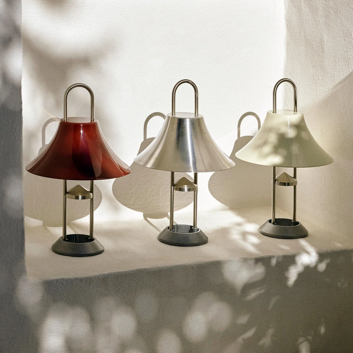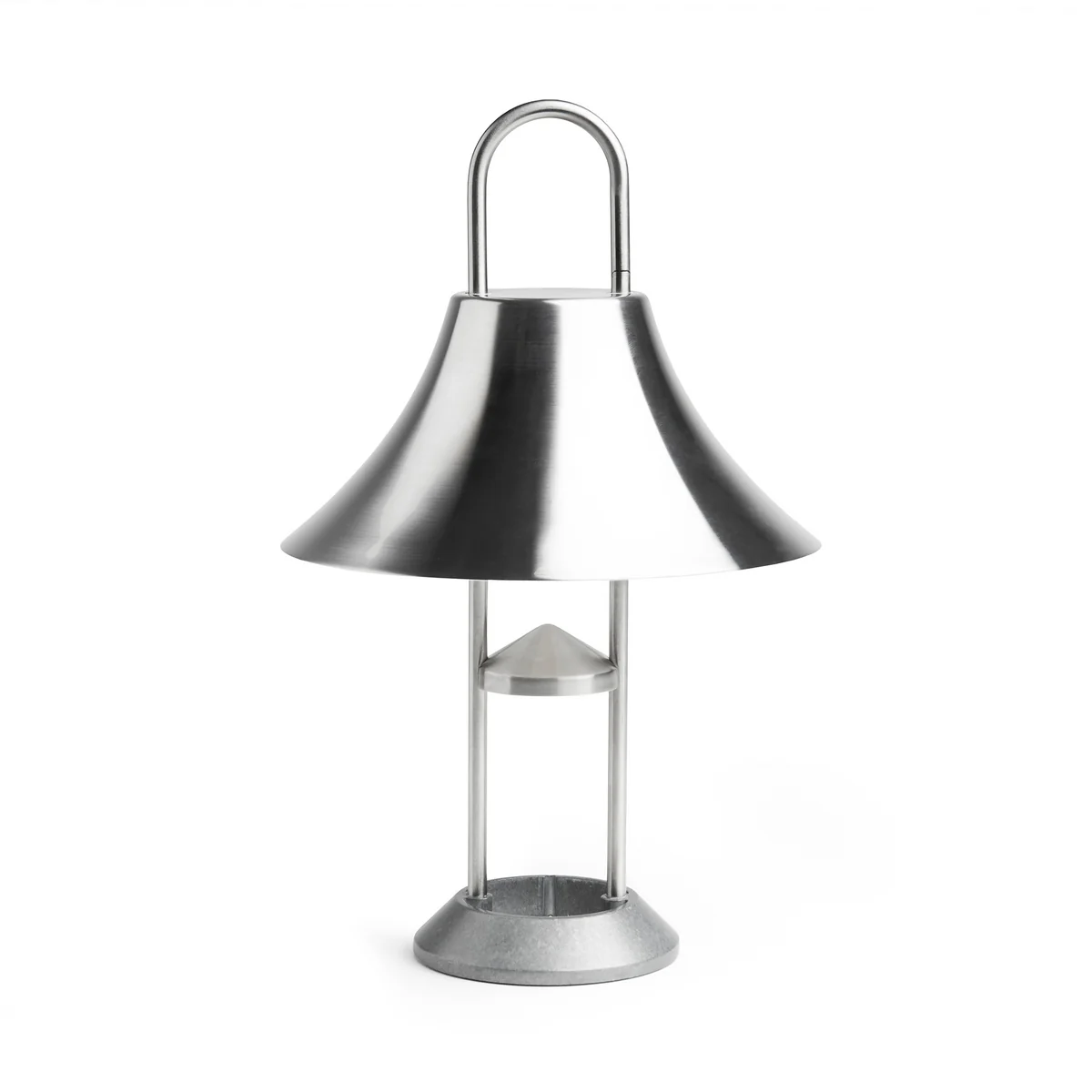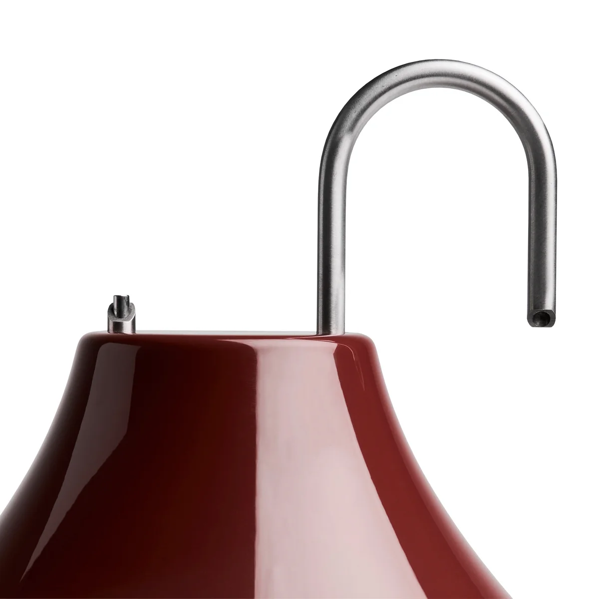 The Mousqueton Portable LED Light by Inga Sempé for the Danish manufacturer HAY is a highly aesthetic outdoor luminaire. Technical elements are integrated in a decorative design. Thus, the carabiner of the lamp can be hung on a branch or rope if necessary. The body of the Mousqueton lamp is made of weather-resistant stainless steel and zinc alloy. The shade is available in a variety of colors. The Mousqueton Portable LED Light can be used both indoors and outdoors, depending on your preference.
