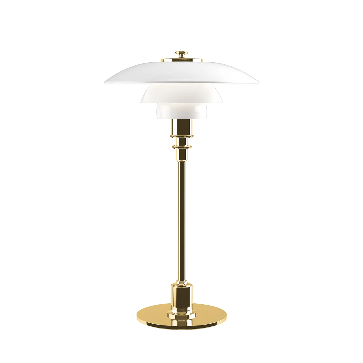 The PH 2/1 table lamp is part of the 2/1 family from Louis Poulsen , which already includes a chandelier, a pendant and a wall lamp. The lamp was designed by Poul Henningsen, whose initials form the name of the lamp.