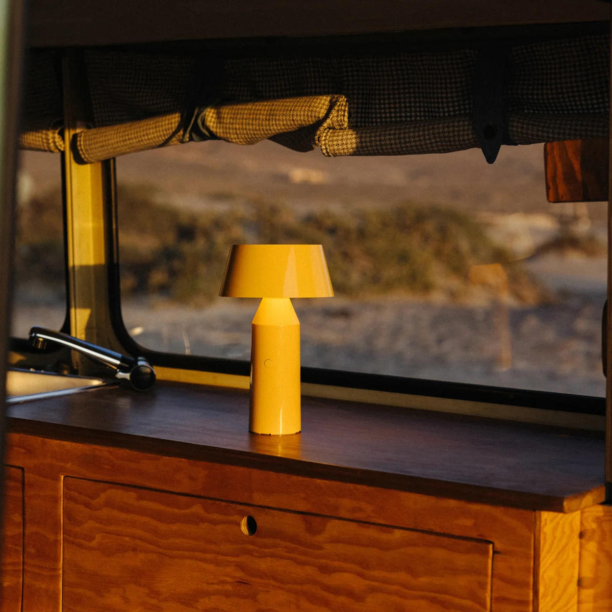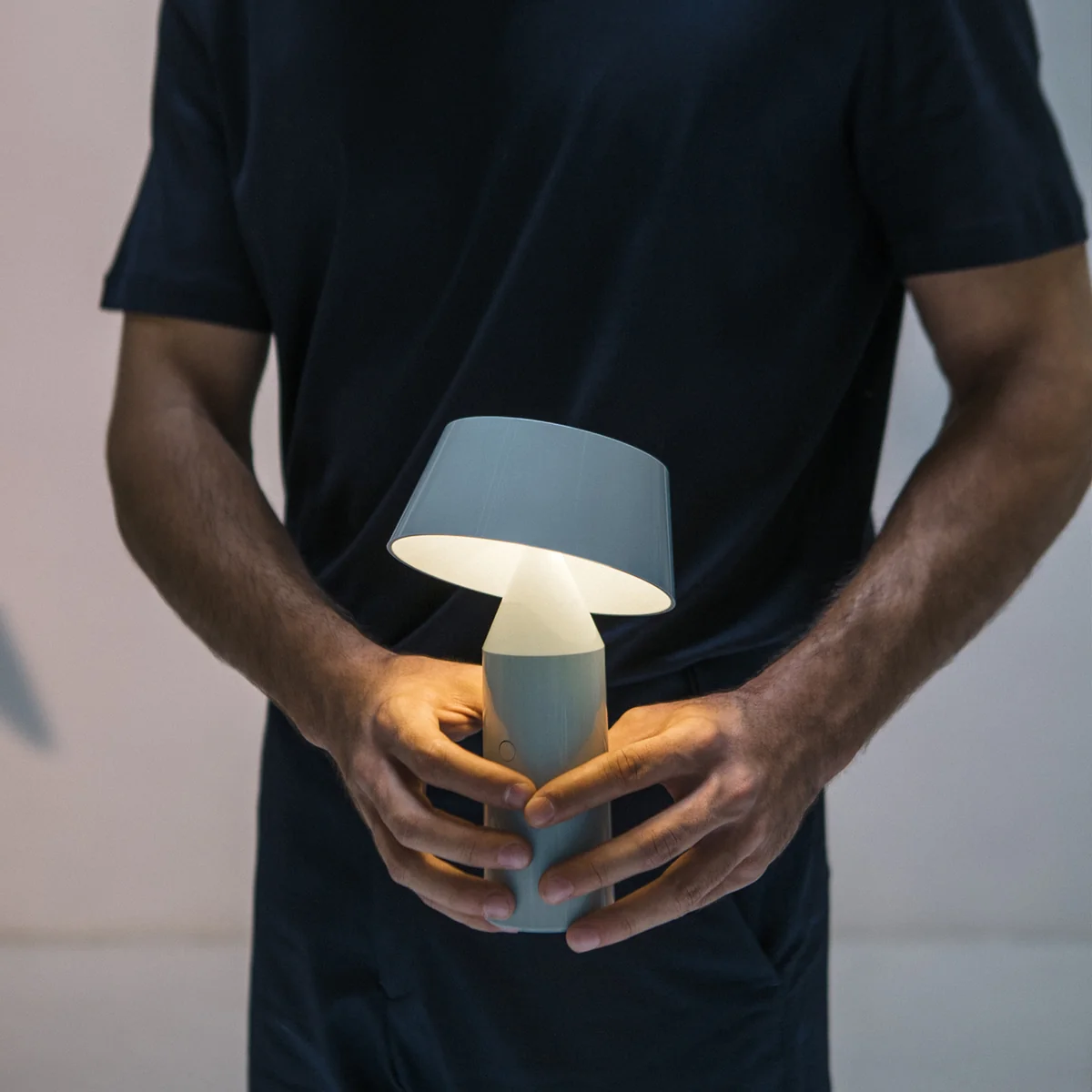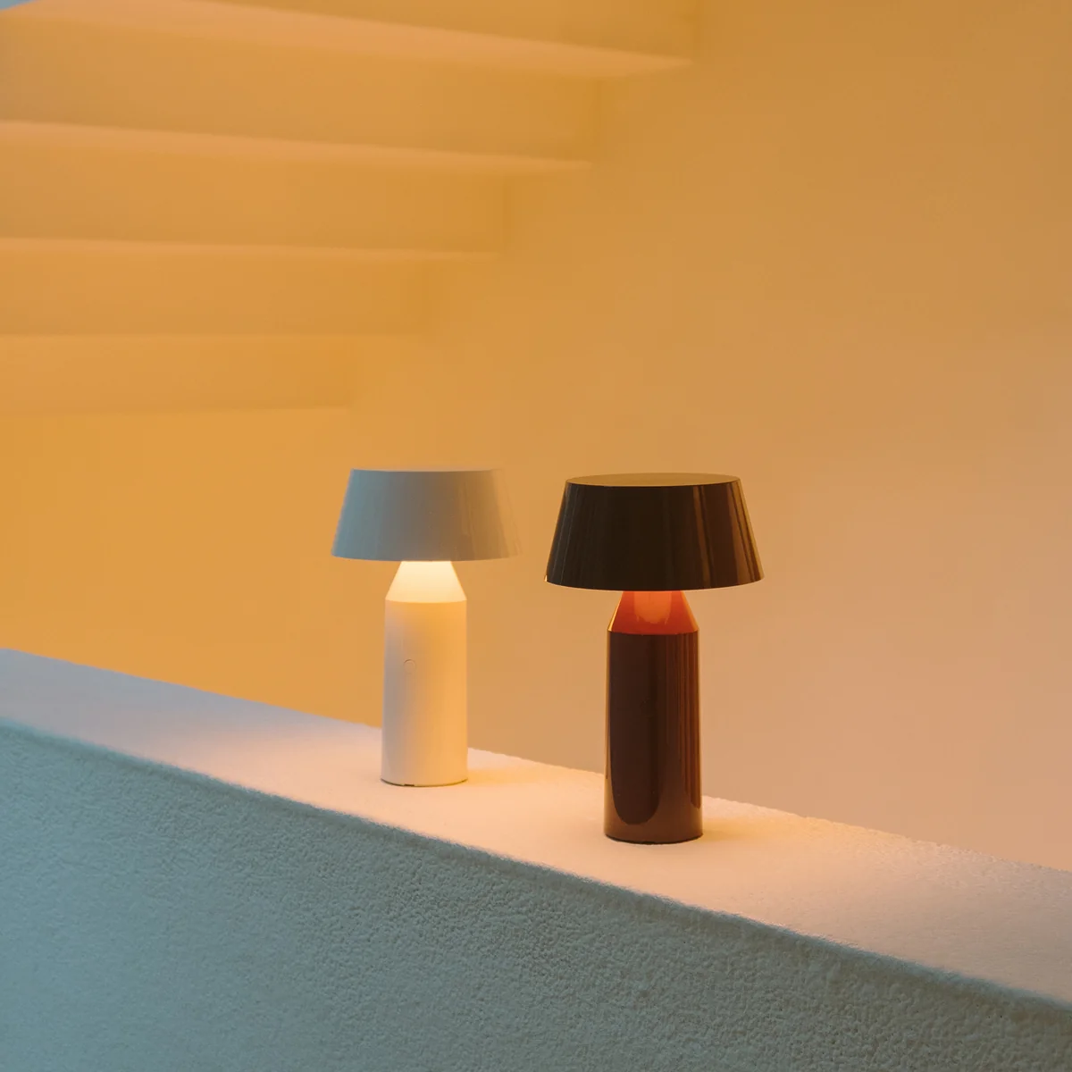 This colorful lamp provides unforgettable moments with its cozy and warm light, no matter where it is placed. It is cordless and equipped with an energy-saving rechargeable battery. Christophe Mathieu designed the Bicoca Rechargeable LED table lamp in 2017 for marset. The geometric Bicoca lamp is made of polycarbonate and can be oriented as desired thanks to its movable shade. The joint is made of a stainless steel-Teflon mix.