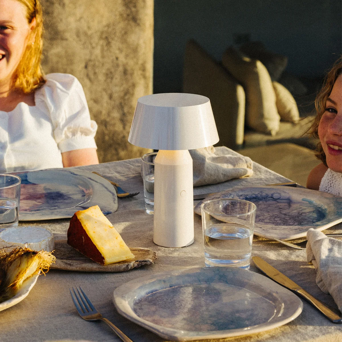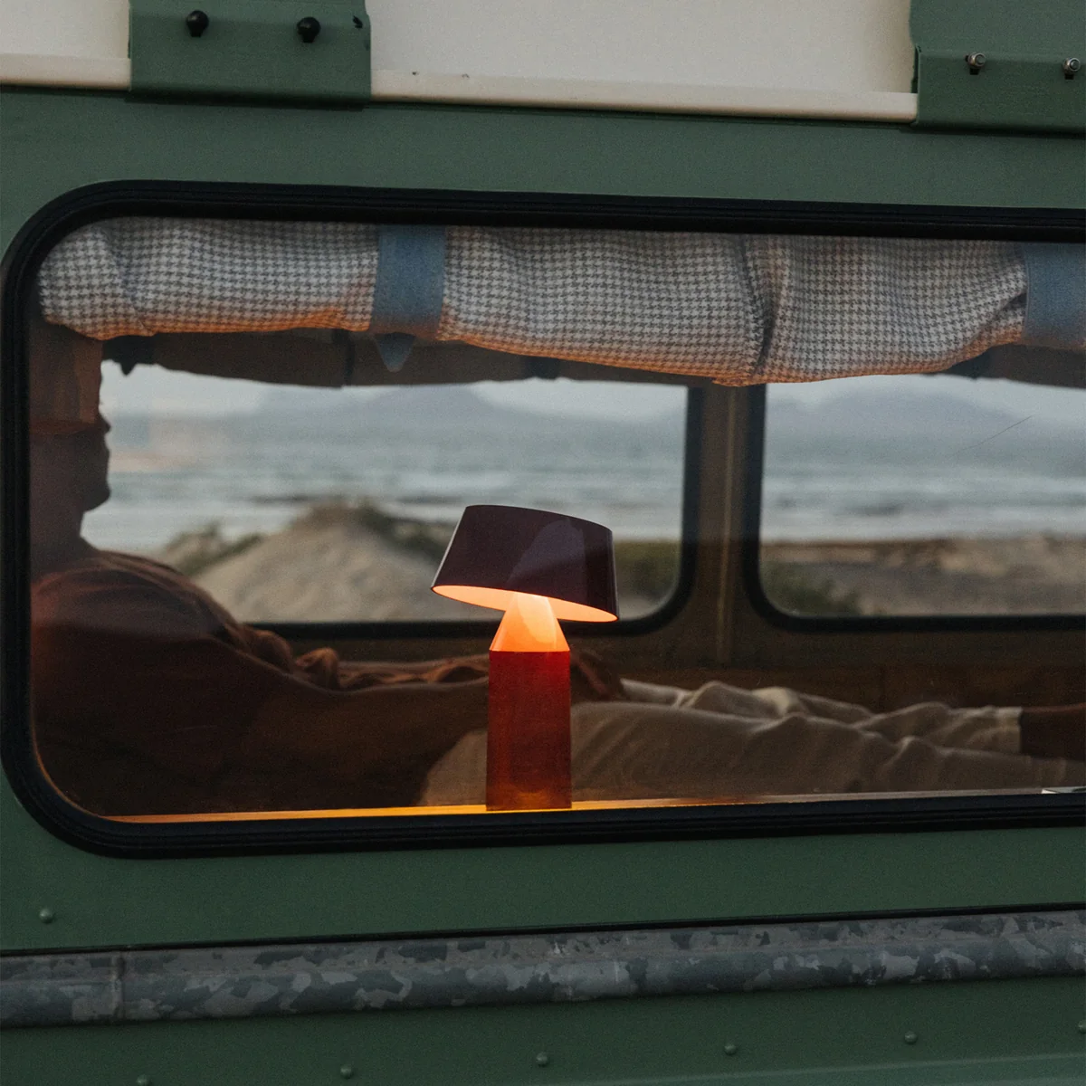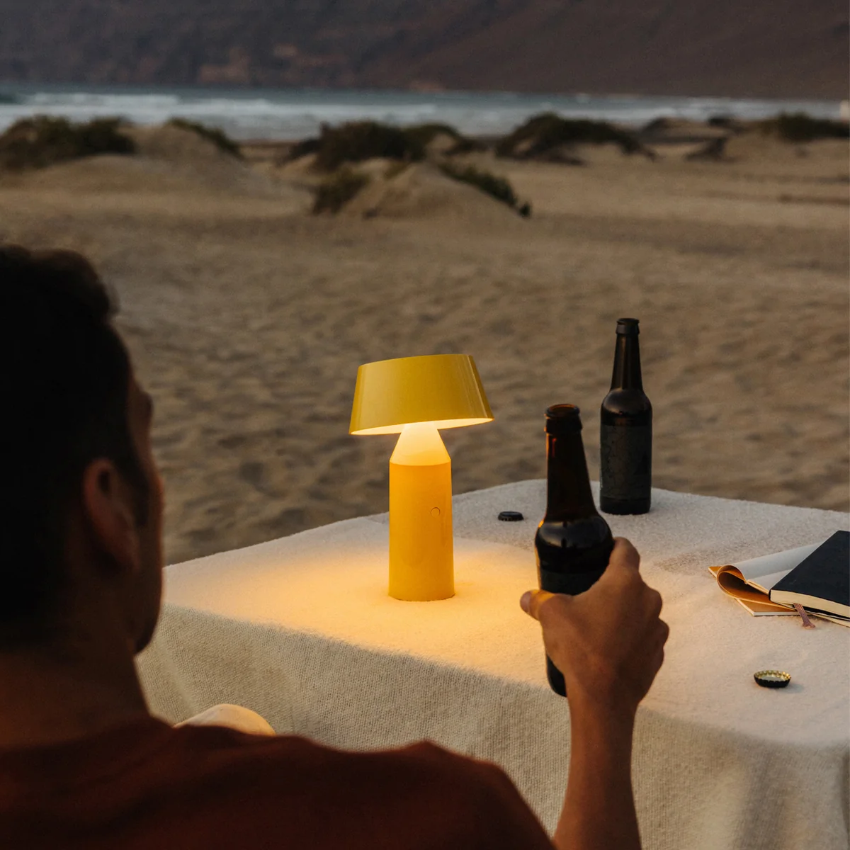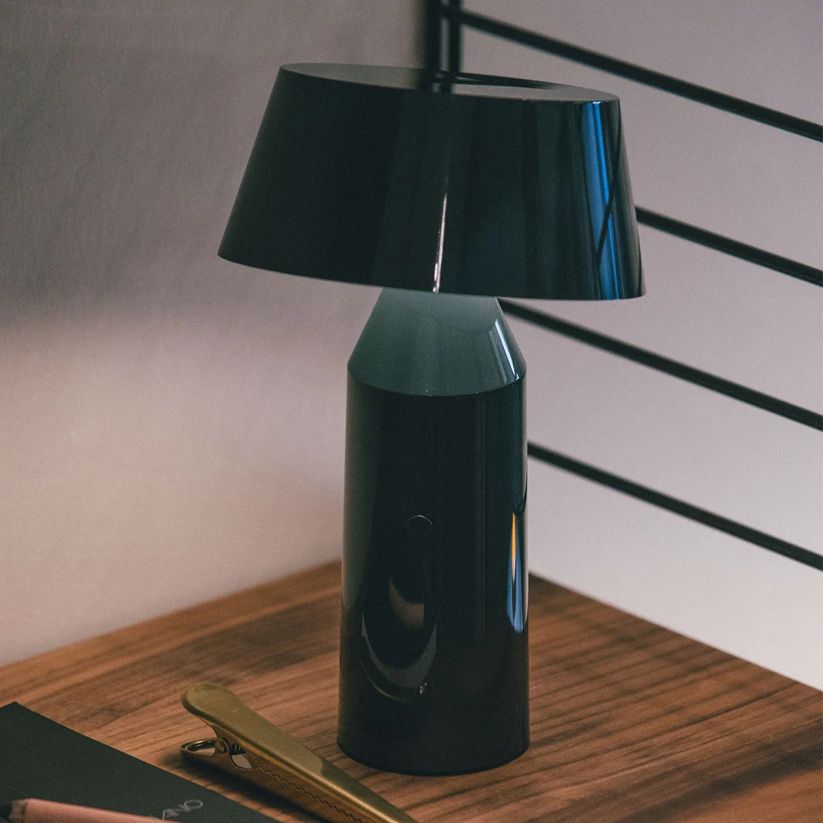 This colorful lamp provides unforgettable moments with its cozy and warm light, no matter where it is placed. It is cordless and equipped with an energy-saving rechargeable battery. Christophe Mathieu designed the Bicoca Rechargeable LED table lamp in 2017 for marset. The geometric Bicoca lamp is made of polycarbonate and can be oriented as desired thanks to its movable shade. The joint is made of a stainless steel-Teflon mix.