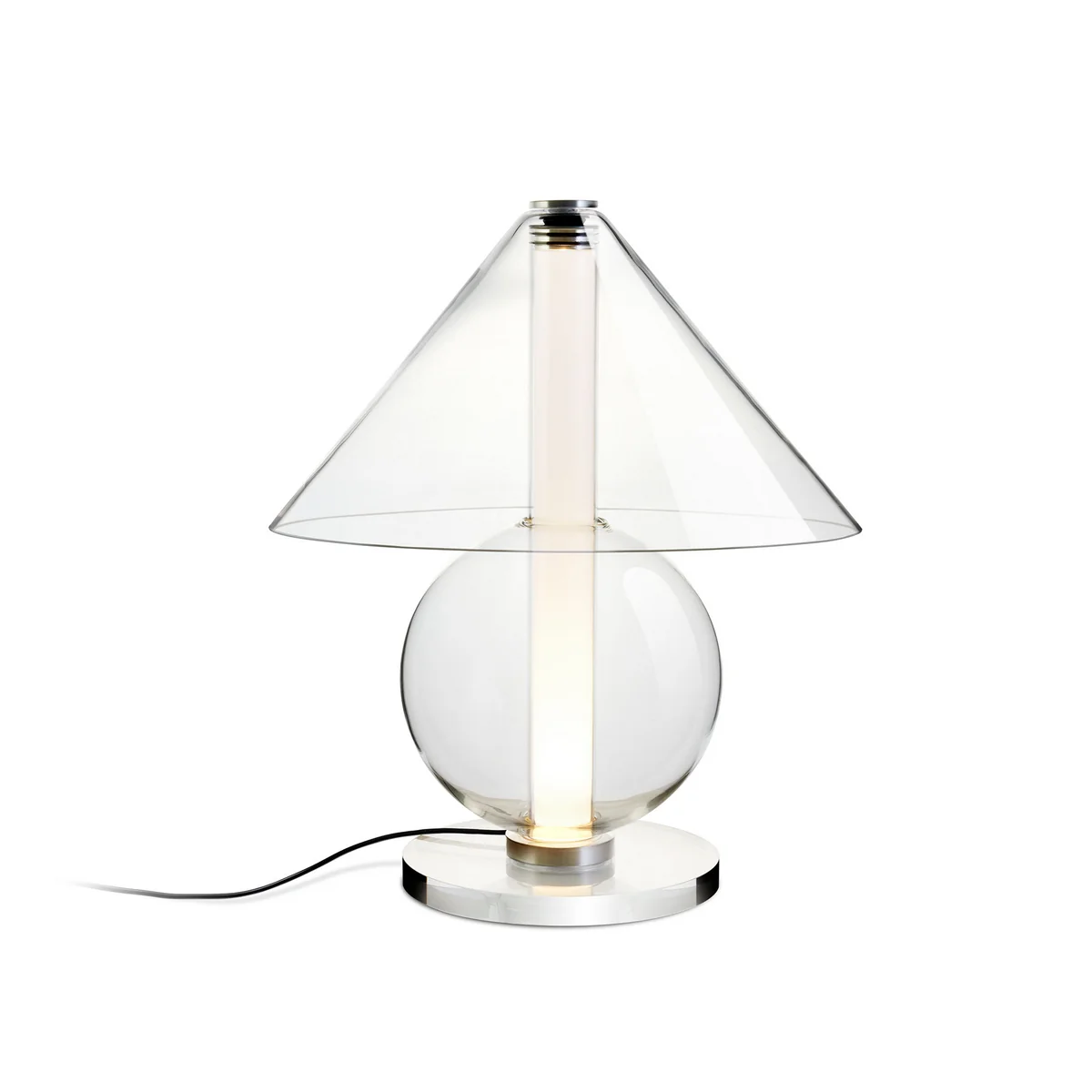The Fragile table lamp from marset is a unique creation by designer Jaume Ramírez that combines timeless design with innovative elements. Its lampshade casts the light in all directions, creating a warm and inviting atmosphere in the room. The shape of the luminaire consists of various geometric figures, such as a delicate cone on a sphere, which are connected by a cylinder. This cylinder radiates the light into the room from below and creates warm and diffuse tones.