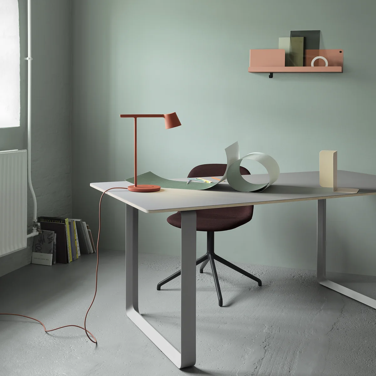 The luminaire made of cast and extruded aluminum with adjustable head and arm sections, which provide both direct and indirect light, has a diffuser and a dimmer function that allows the light to be continuously adjusted. This means that the Tip can be used on the desk as well as on the sideboard in the living room.