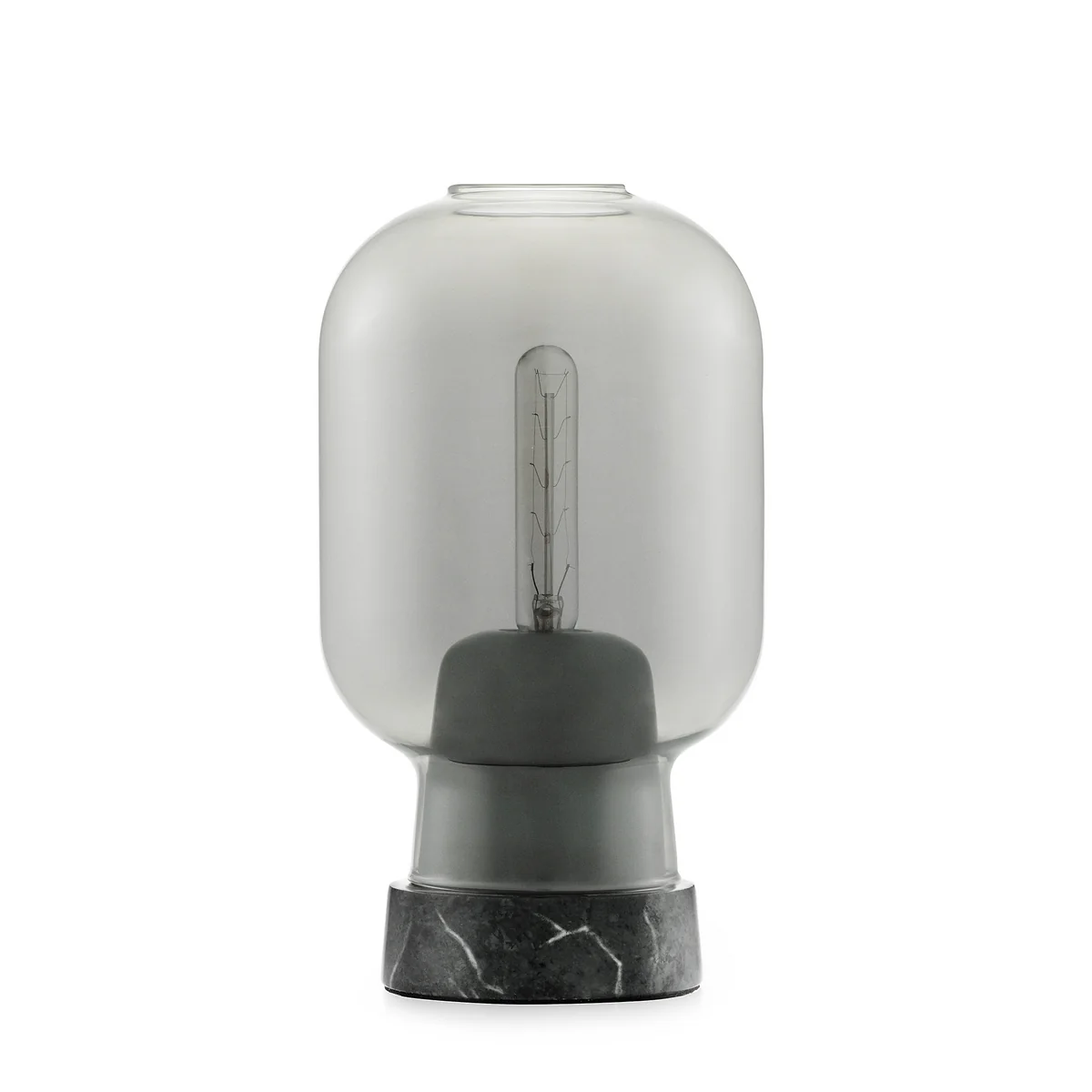Normann Copenhagen and Legald have emphasized the functional details, for example the way the shade rests on the base of the Amp table lamp. The combination of the materials creates an interesting contrast between the transparent, light glass and the solid, heavy marble or brass base.