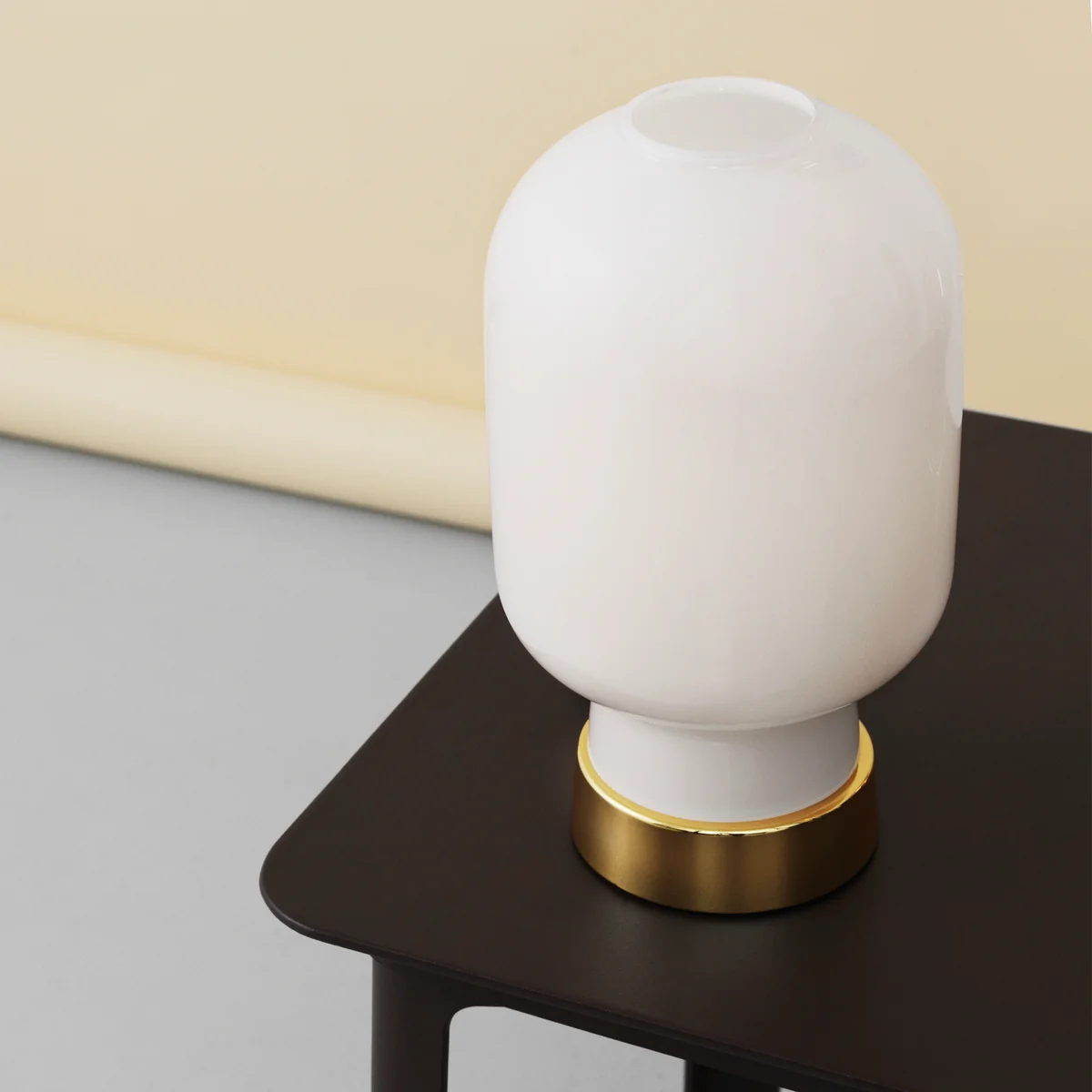 The idea for the shape of the Amp table lamp was born when designer Simon Legald was restoring an old radio from the 1960s at home. While searching for a spare part for the radio, he noticed the shimmer of the tube amplifier. The simple, oval shape and the lampshade refer to this - as does the name Amp , the English term for tube amps. The proportions of Normann Copenhagen's amp lamps are carefully worked out.
