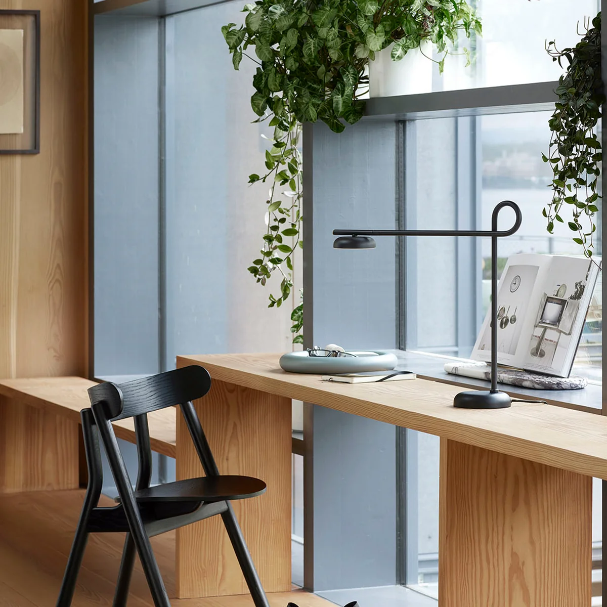 The Salto Table lamp from Northern is a tribute to the youth memories of the designers from the design studio Gridy. The curve in the body is reminiscent of a ramp for skateboarding. The table lamp is a delicate but striking object in the interior.