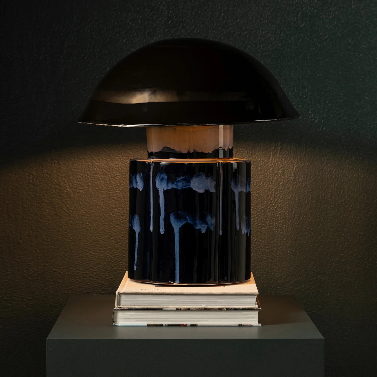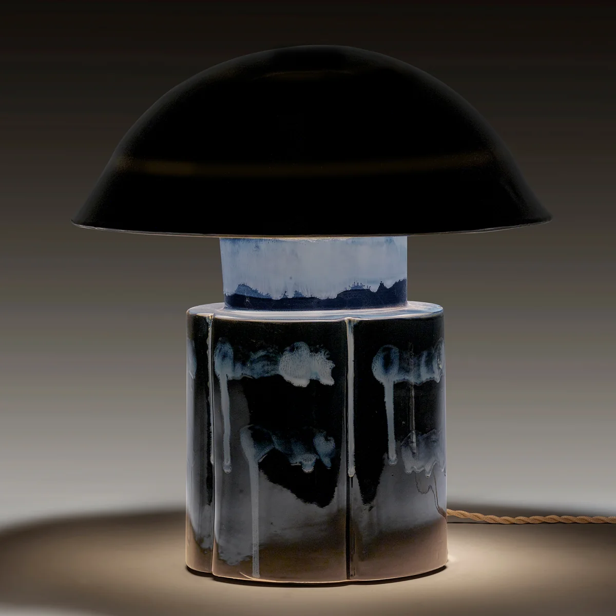Deep blue table lamp with reactive glaze