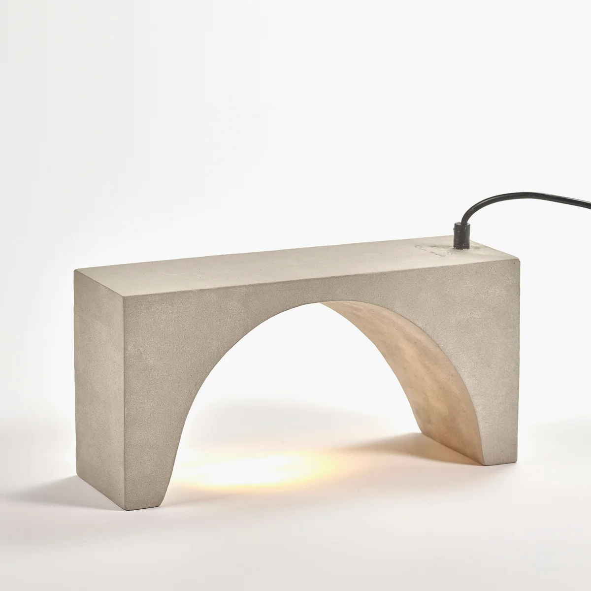 The Tangent table lamp from Serax , designed by Patrick Paris, combines raw aesthetics and sculptural elegance. Made from gray concrete, the shape of the lamp is reminiscent of the clear, powerful lines of a bridge arch. With its architectural appearance, the table lamp blends harmoniously into modern and minimalist living spaces.