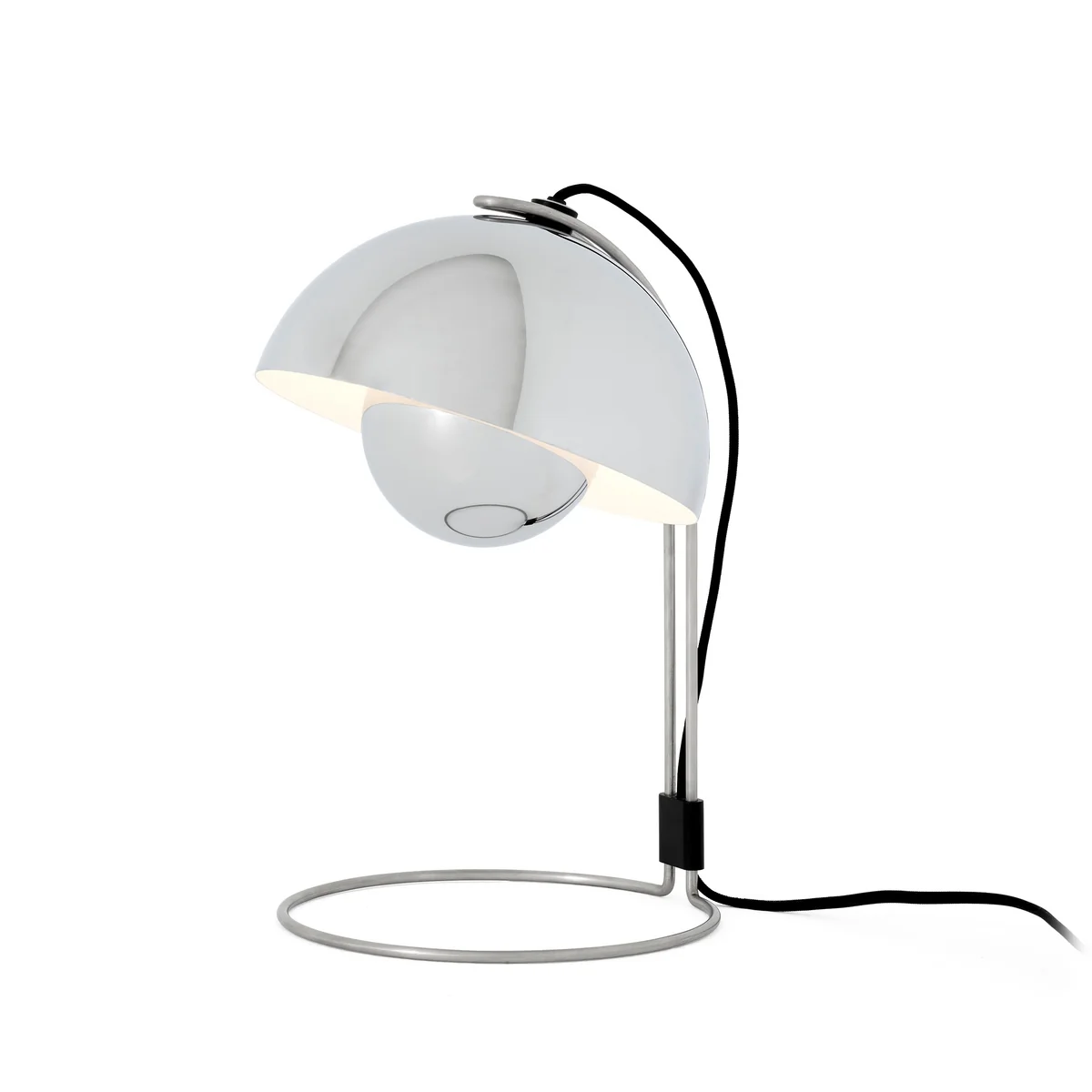 The lamp, consisting of two semicircular spheres of painted steel facing each other, is then as now a design object of exceptional quality and has not lost its relevance. The Danish designer Verner Panton was inspired by the Peace and Love Generation and kept collecting new ideas on his tours with the VW Bulli through Europe. The ideas of freedom, modernity and progress can be clearly found in the design of the table lamp FlowerPot VP4.