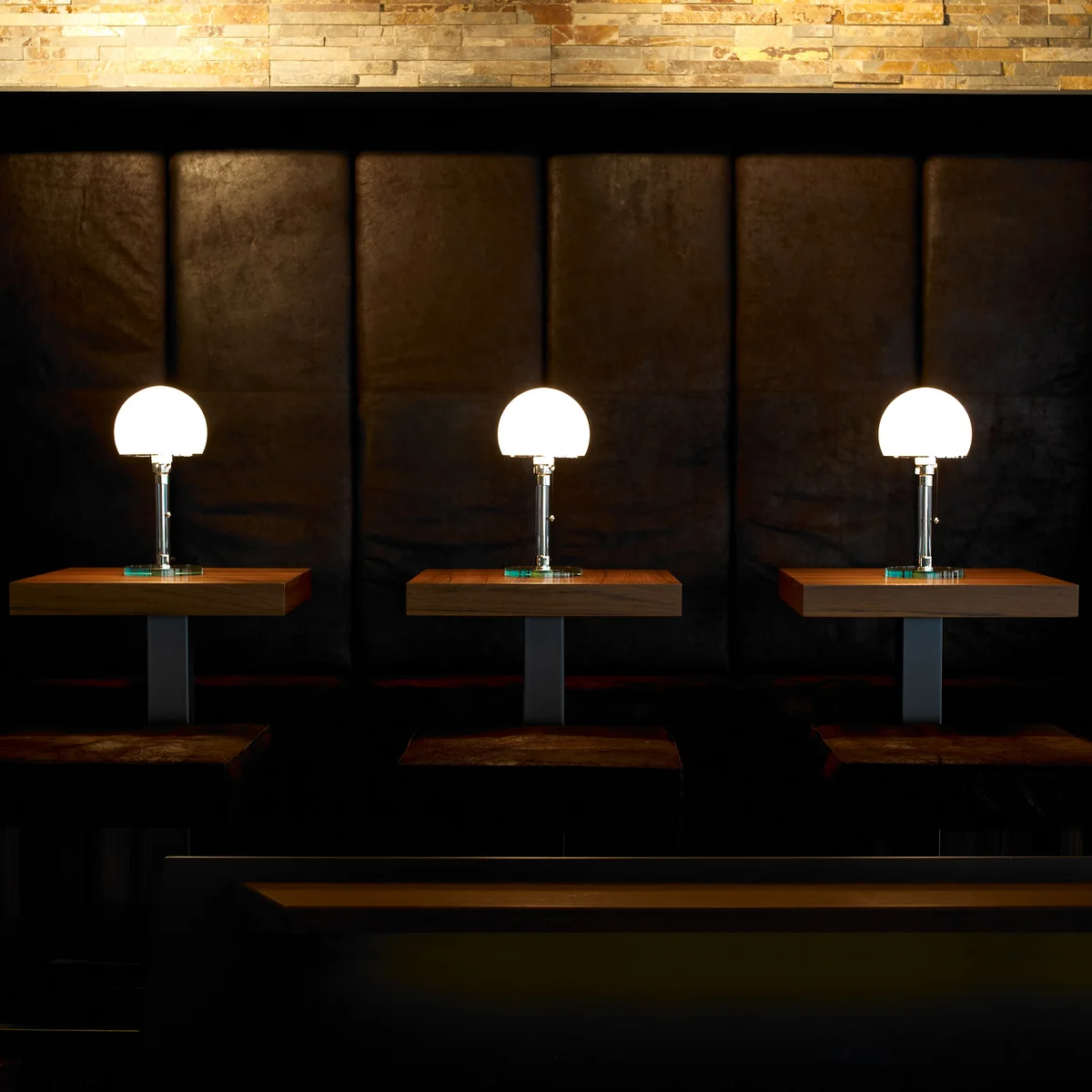 The Wagenfeld -lamp is one of the most famous lamps of the Bauhaus era. It was designed in 1924 by Wilhelm Wagenfeld (1900-1990) in 1924. After an apprenticeship in a silverware factory and attending a drawing academy, he joined the world-famous Bauhaus workshop as a journeyman and created the design classic W24, the " Wagenfeld -lamp", also known as the "Bauhaus lamp". With his designs in metal and glass, he became Wagenfeld became one of the most important industrial designers of his time.