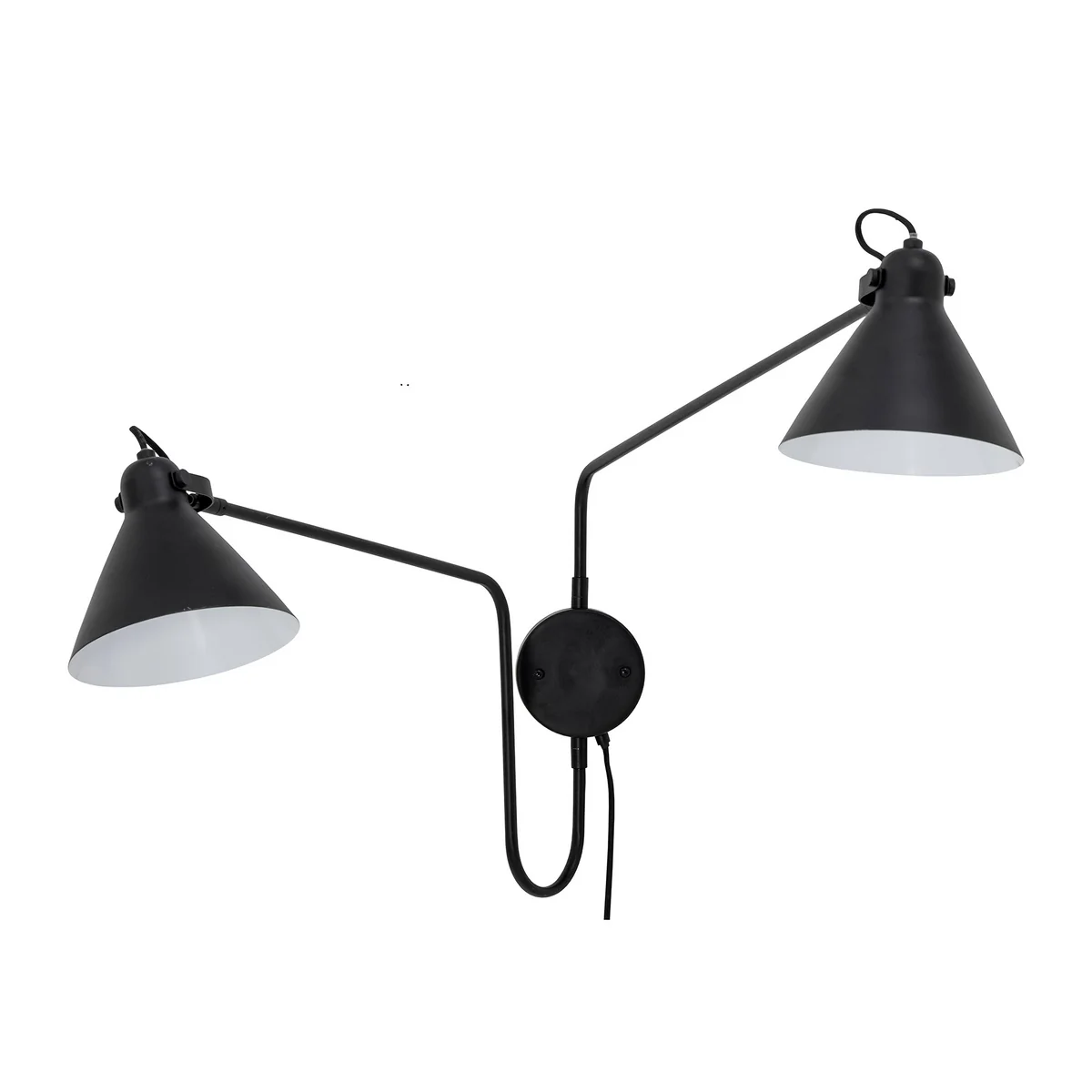 Wall lamp Felicity from Bloomingville is a classic Nordic lamp made of black iron with a touch of modernity. It has two beautiful movable lampshades so that the light always falls on the right spot. It can be placed near the nightstand or in the living room to create a cozy ambience.